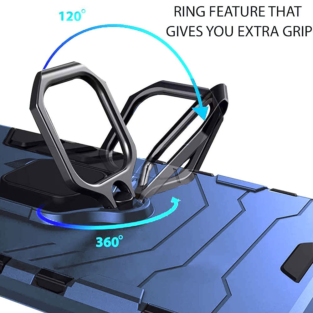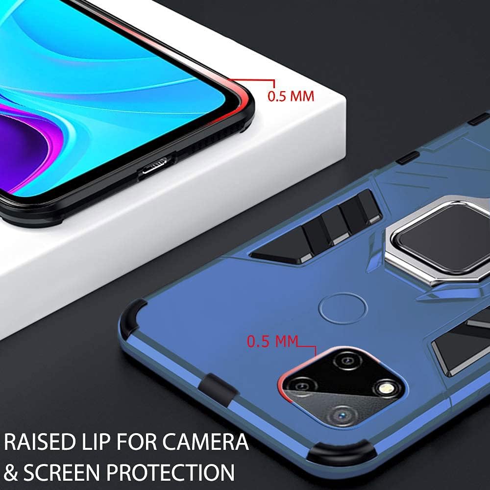Shock Proof Back Case Mobile Cover for Xiaomi Mi Redmi 9 | Redmi 9 Activ | Poco C31 (Armor | Hybrid PC + TPU | Full Protection with Ring Holder Kickstand | Carbon Blue)