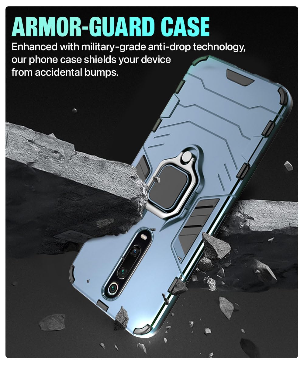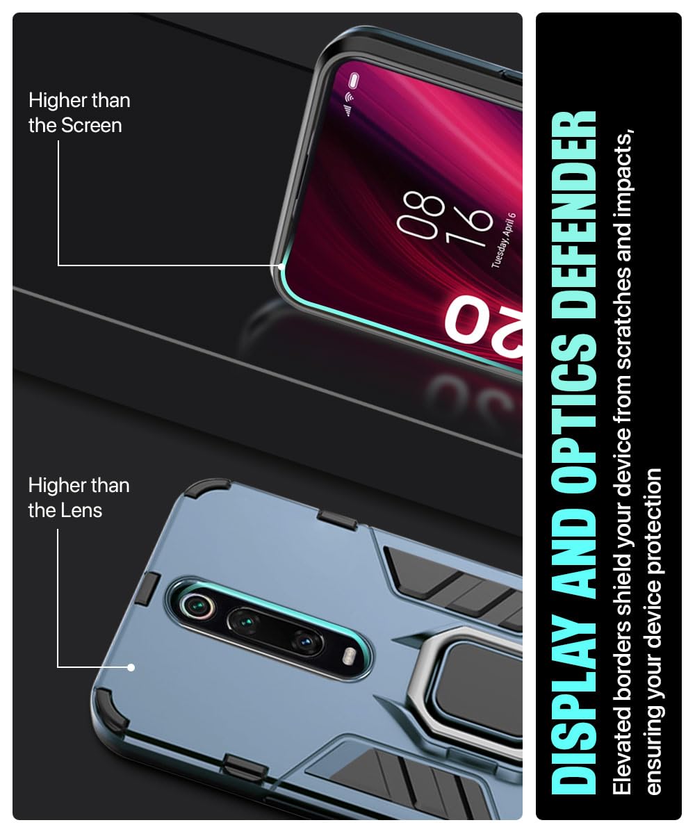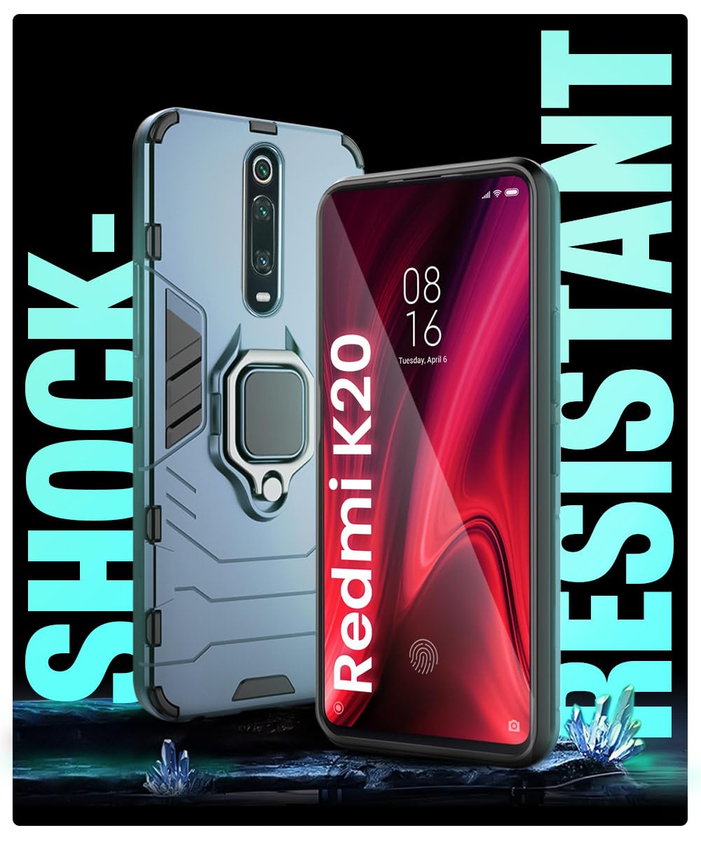 Shock Proof Back Case Mobile Cover for Xiaomi Mi Redmi K20 / K20 Pro | Back Cover Case (Tough Armor | Hybrid PC + TPU | Ring Holder & in-Built Kickstand | Blue)