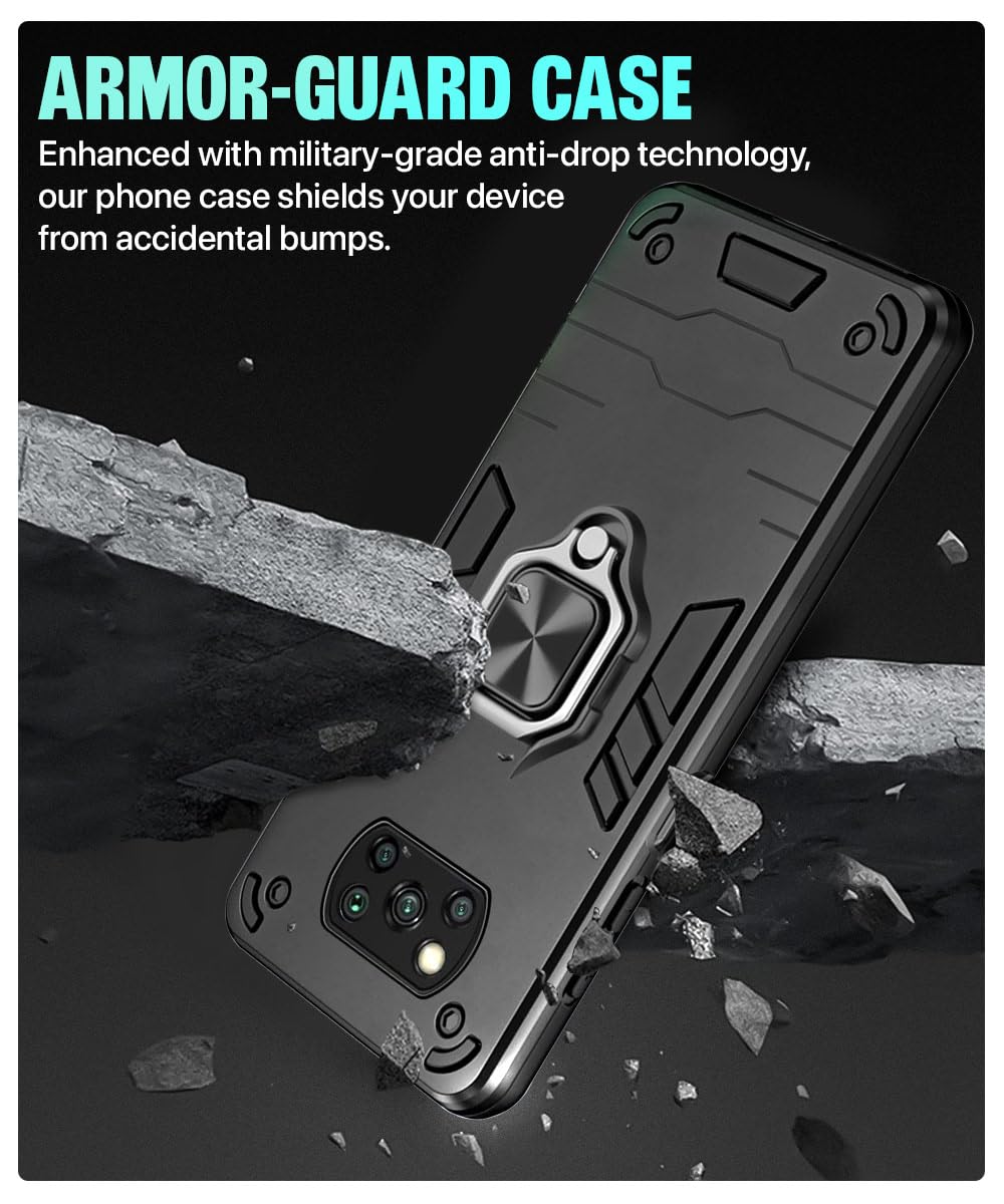 Shock Proof Back Case Mobile Cover for Xiaomi Poco X3 (Armor | Hybrid PC + TPU | Full Protection with Ring Holder Kickstand | Carbon Black)