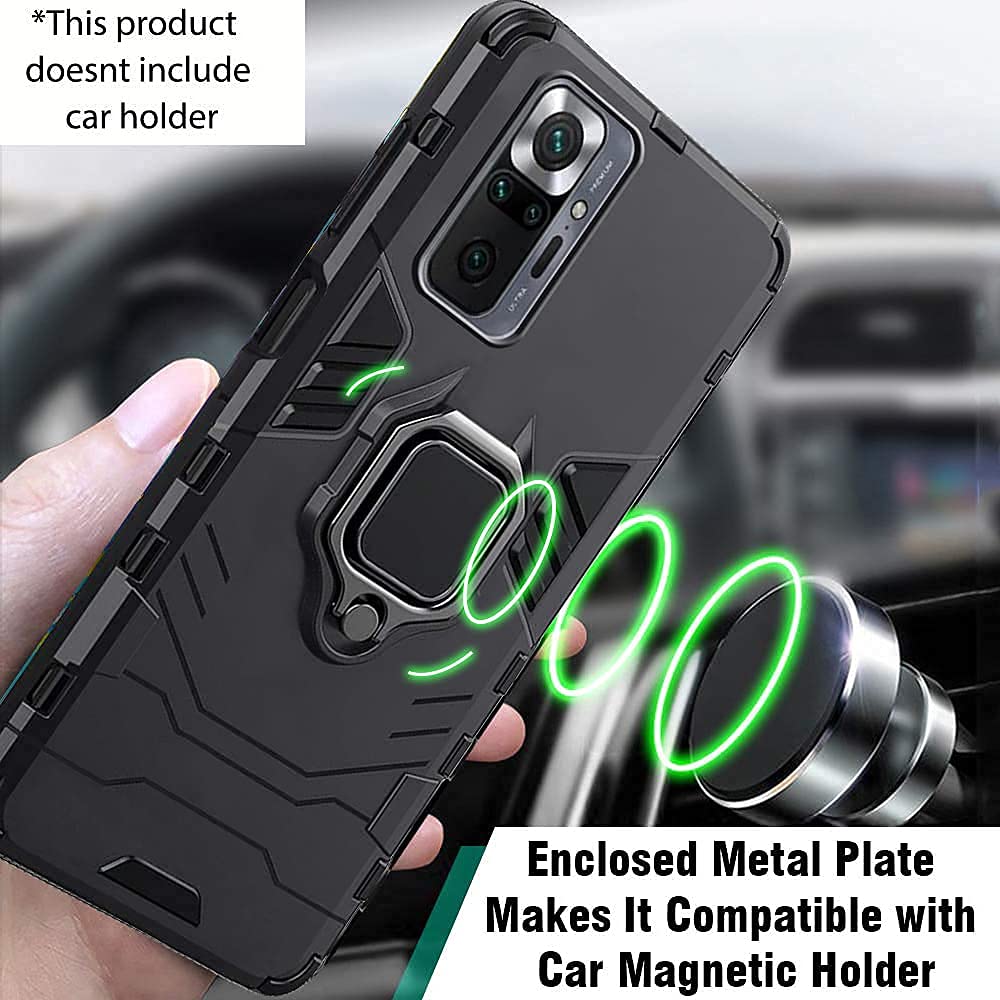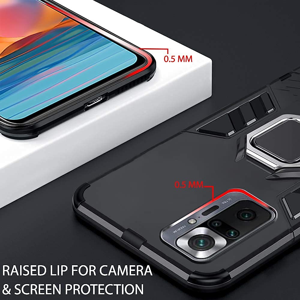 Shock Proof Back Case Mobile Cover for Xiaomi Redmi Note 10 Pro (Armor | Hybrid PC + TPU | Full Protection with Ring Holder Kickstand | Carbon Black)