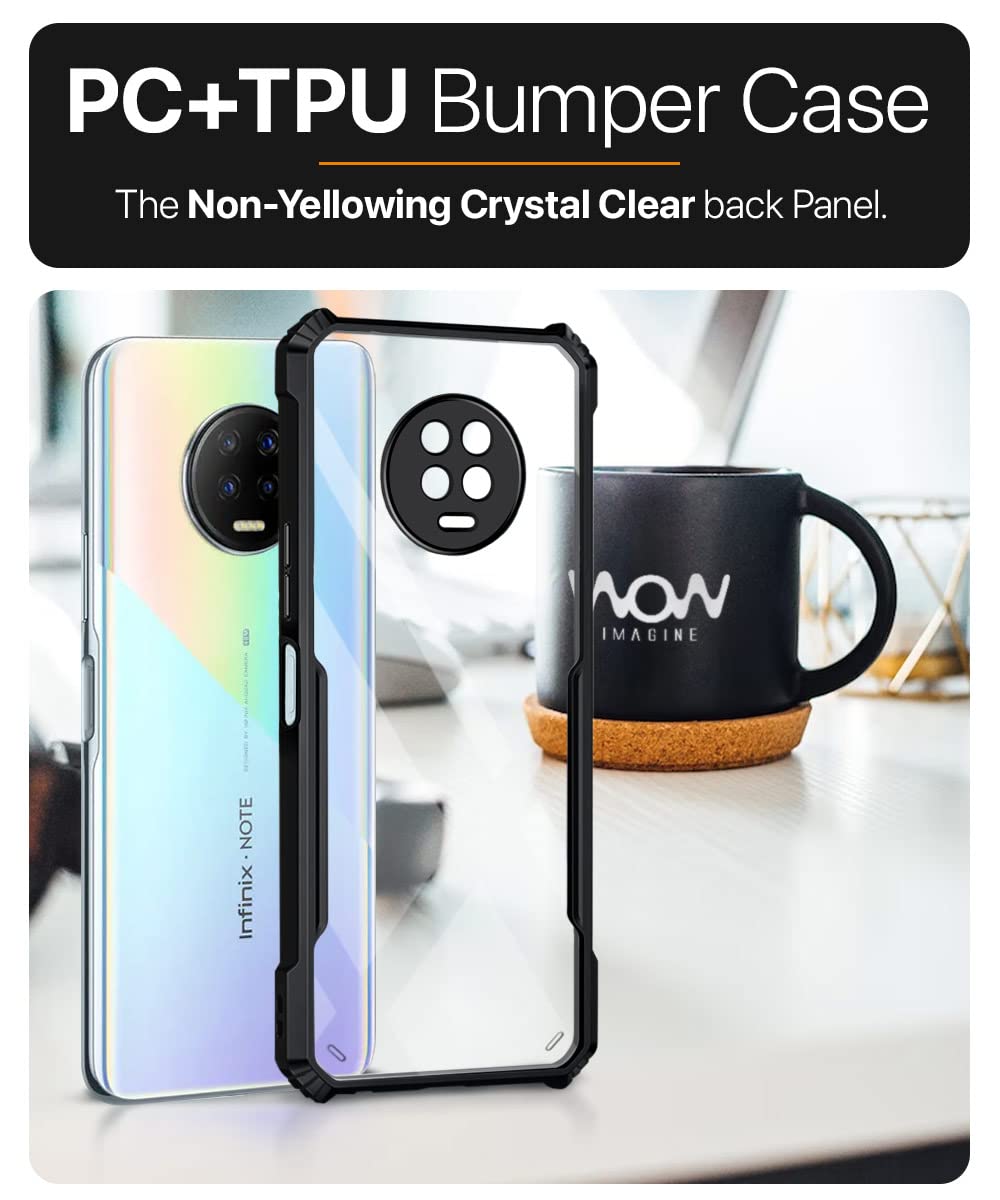 Shock Proof Clear Back Case Mobile Cover for Infinix Note 7 (Hard | Hybrid PC + TPU | Full Armour Device & Camera Protection | Black)
