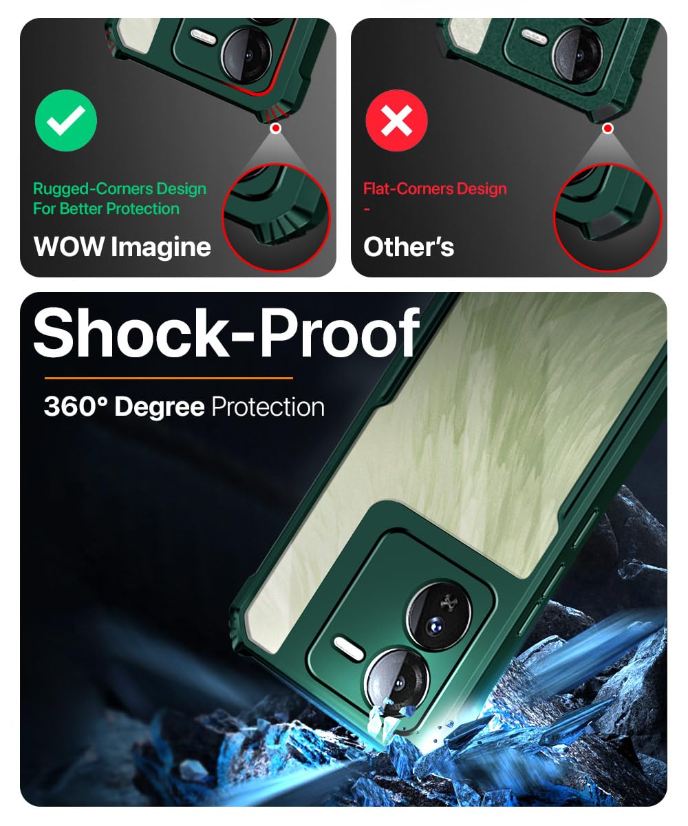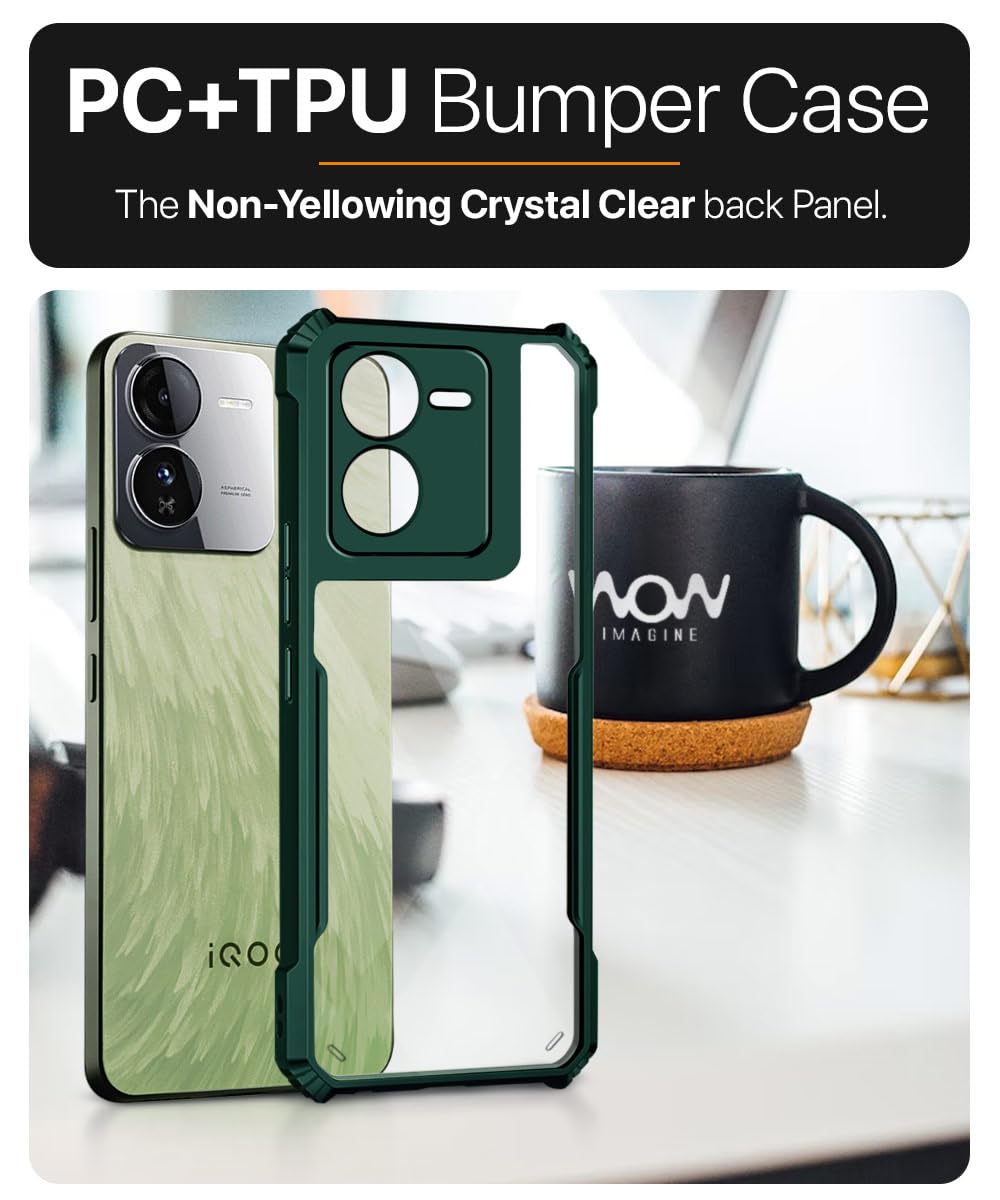 Shock Proof Clear Back Case Mobile Cover for iQOO Z9 5G (Hard | Hybrid PC + TPU | Full Armour Device & Camera Protection | Green)