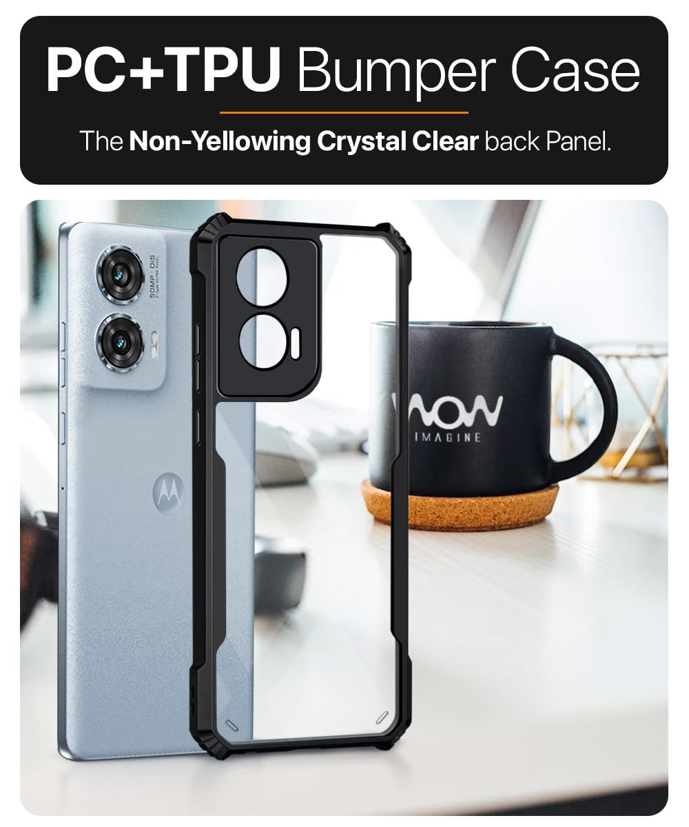 Shock Proof Clear Back Case Mobile Cover for Motorola Moto Edge 50 Fusion 5G | Moto Edge G96 Fusion 5G (Hard | Hybrid PC + TPU | Full Armour Device & Camera Protection | Black)