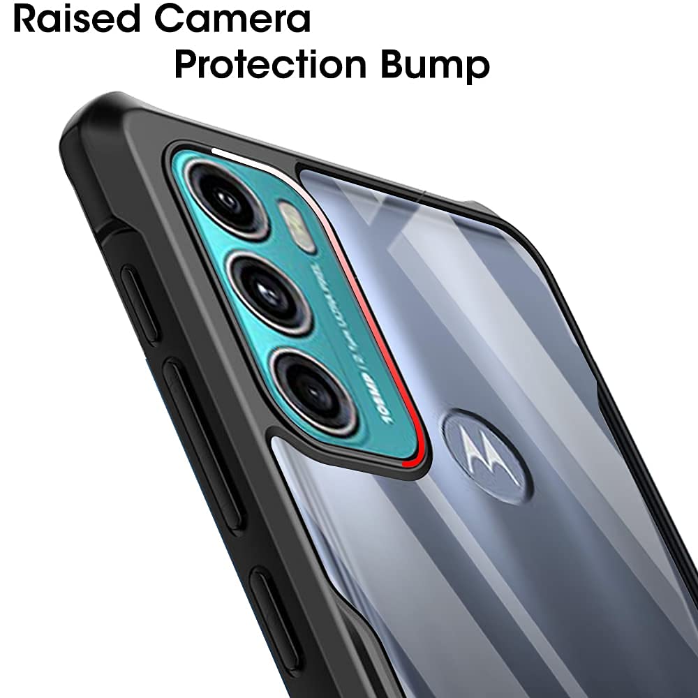 Shock Proof Clear Back Case Mobile Cover for Motorola Moto G60 | G40 Fusion (Hard | Hybrid PC + TPU | Full Armour Device & Camera Protection | Black)
