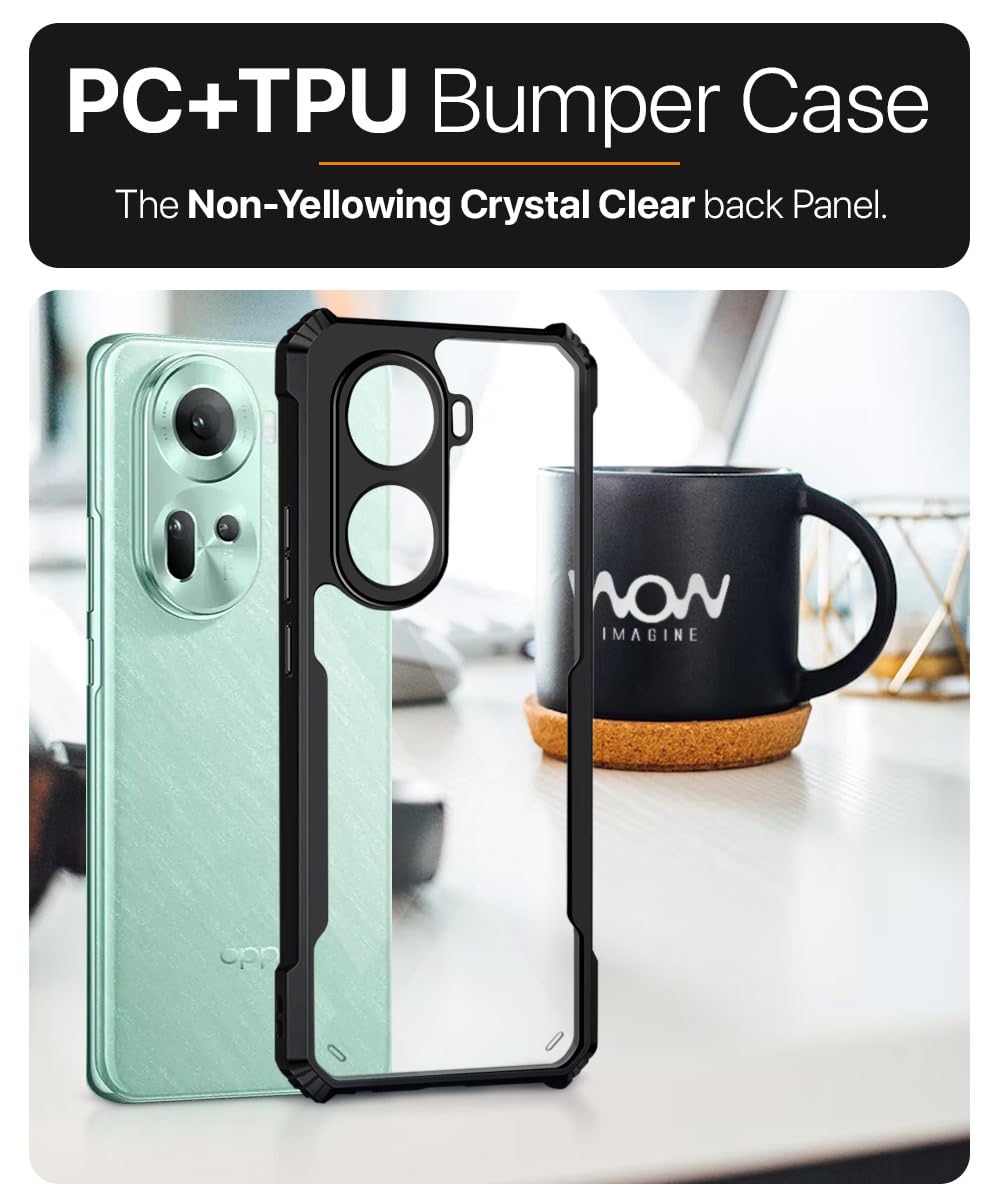 The Shock Proof Clear Back Case Mobile Cover for Oppo Reno 11 5G (Hard | Hybrid PC + TPU | Full Armour Device & Camera Protection | Black) is designed with premium quality materials to provide superior protection, durability, and style for your smartphone. It offers a perfect balance between functionality and aesthetics, ensuring your device stays safe from scratches, impacts, and daily wear. Engineered with precision, it features accurate cutouts for ports, buttons, and cameras, making it highly convenient for everyday use. The slim and lightweight design ensures that your device retains its sleek profile without adding unnecessary bulk. Whether it is a nano film tempered glass, a hybrid back case, or a camera lens protector, each product is created with attention to detail to enhance the user experience and extend the life of your smartphone. The material used ensures long-lasting clarity, anti-scratch performance, and resistance against fingerprints and smudges. It is the ideal choice for users who want both style and substance in their smartphone accessories. This product from reflects innovation and craftsmanship, making it a reliable accessory that safeguards your investment while maintaining modern appeal.