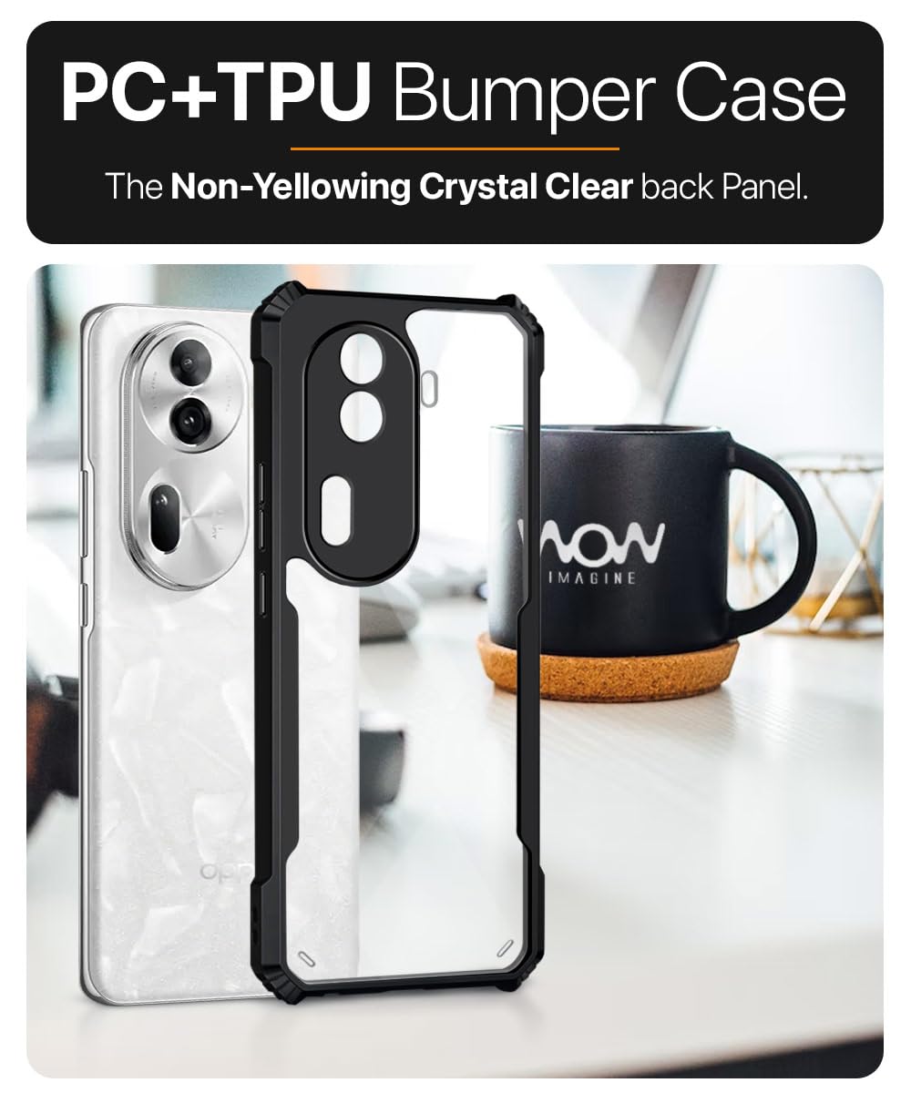 Shock Proof Clear Back Case Mobile Cover for Oppo Reno 11 Pro 5G (Hard | Hybrid PC + TPU | Full Armour Device & Camera Protection | Black)