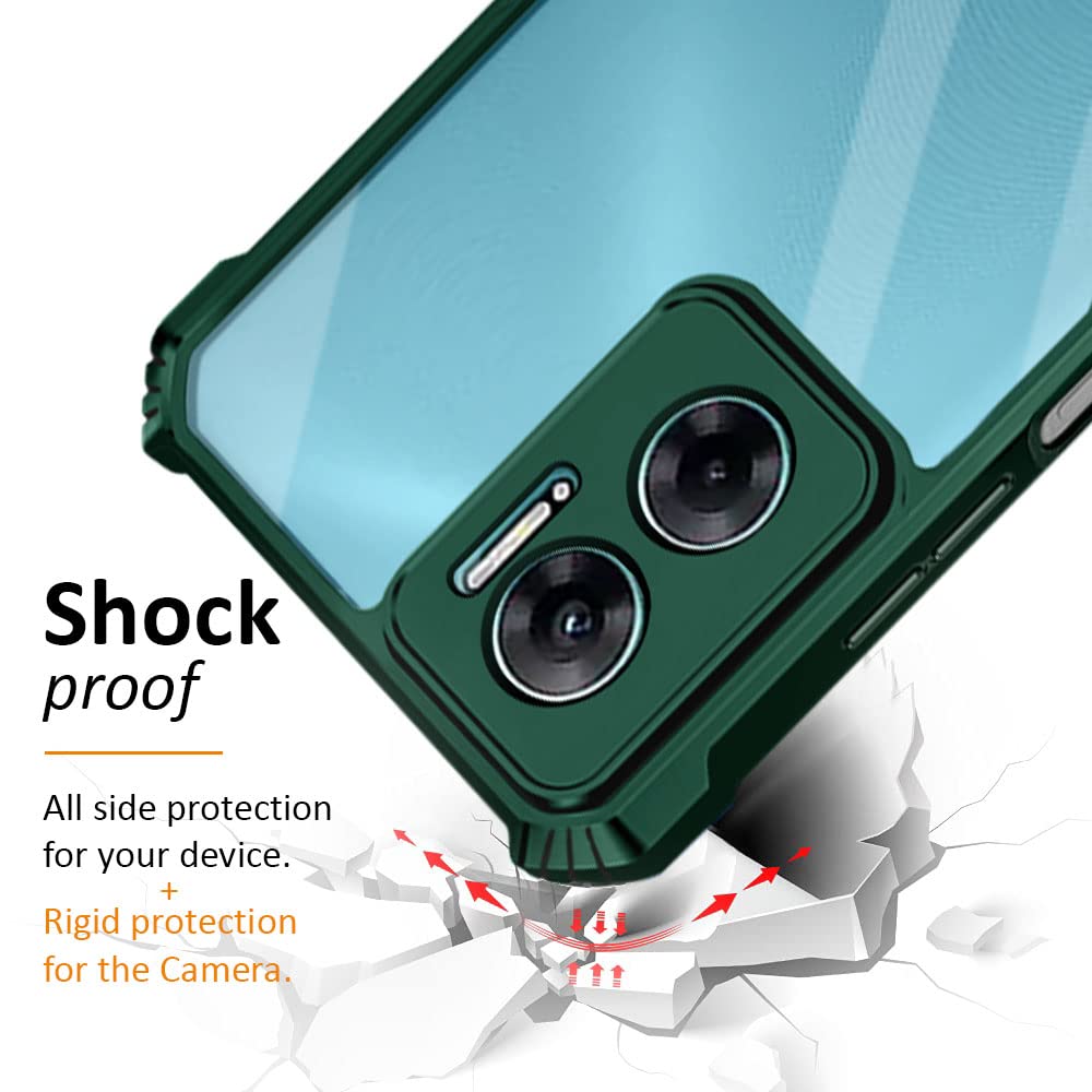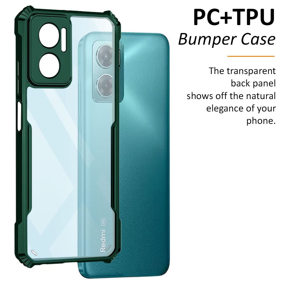 Shock Proof Clear Back Case Mobile Cover for Redmi 11 Prime 5G (Hard | Hybrid PC + TPU | Full Armour Device & Camera Protection | Green)
