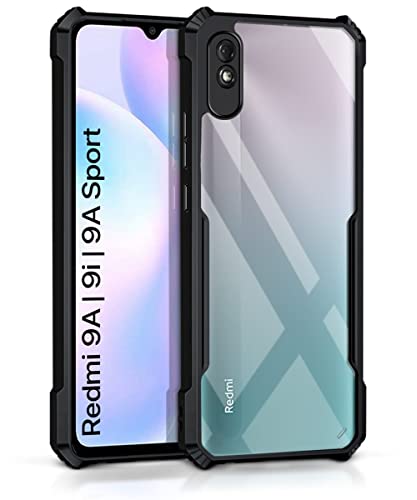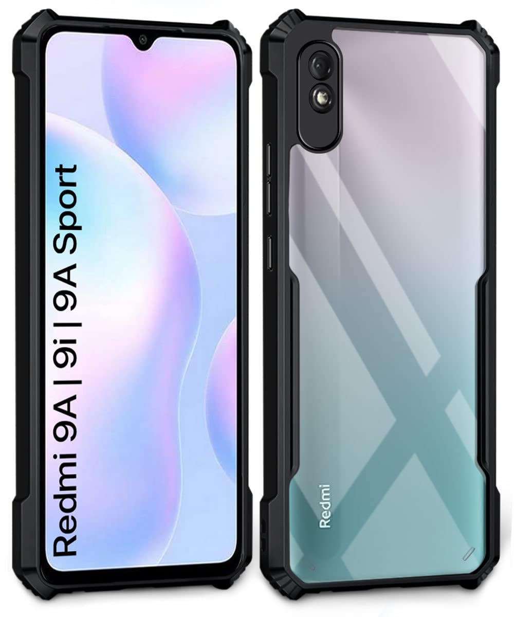 Shock Proof Clear Back Case Mobile Cover for Redmi 9A | 9i | 9A Sport (Hard | Hybrid PC + TPU | Full Armour Device & Camera Protection | Black)