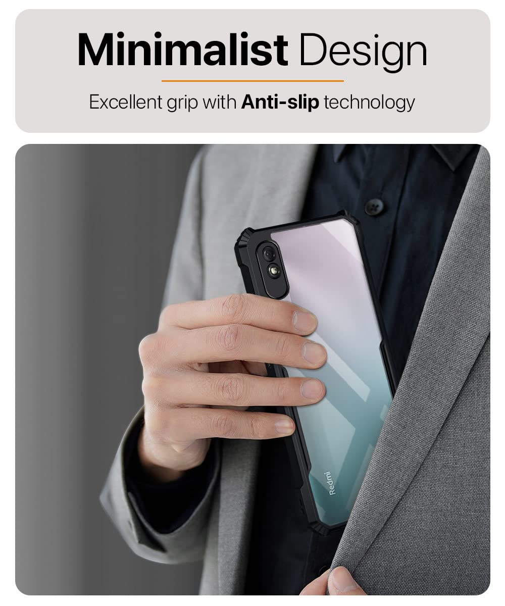 The Shock Proof Clear Back Case Mobile Cover for Redmi 9A | 9i | 9A Sport (Hard | Hybrid PC + TPU | Full Armour Device & Camera Protection | Black) is designed with premium quality materials to provide superior protection, durability, and style for your smartphone. It offers a perfect balance between functionality and aesthetics, ensuring your device stays safe from scratches, impacts, and daily wear. Engineered with precision, it features accurate cutouts for ports, buttons, and cameras, making it highly convenient for everyday use. The slim and lightweight design ensures that your device retains its sleek profile without adding unnecessary bulk. Whether it is a nano film tempered glass, a hybrid back case, or a camera lens protector, each product is created with attention to detail to enhance the user experience and extend the life of your smartphone. The material used ensures long-lasting clarity, anti-scratch performance, and resistance against fingerprints and smudges. It is the ideal choice for users who want both style and substance in their smartphone accessories. This product from reflects innovation and craftsmanship, making it a reliable accessory that safeguards your investment while maintaining modern appeal.