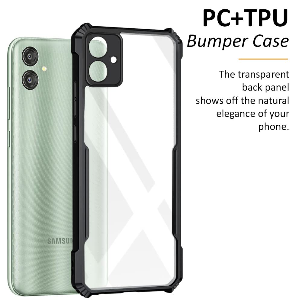 Shock Proof Clear Back Case Mobile Cover for Samsung Galaxy M04 | F04 | A04e (Hard | Hybrid PC + TPU | Full Armour Device & Camera Protection | Black)