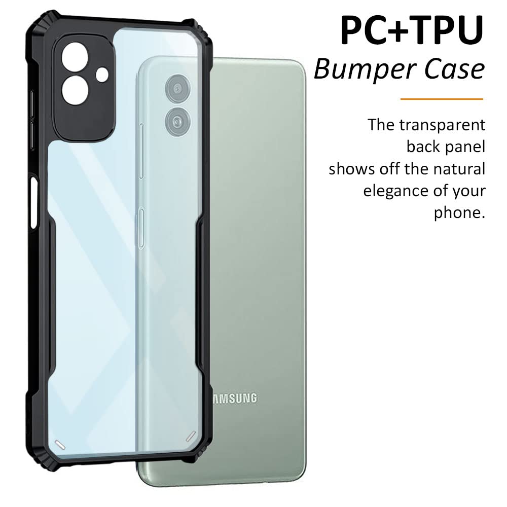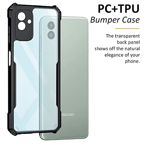 Shock Proof Clear Back Case Mobile Cover for Samsung Galaxy M13 5G (Hard | Hybrid PC + TPU | Full Armour Device & Camera Protection | Black)