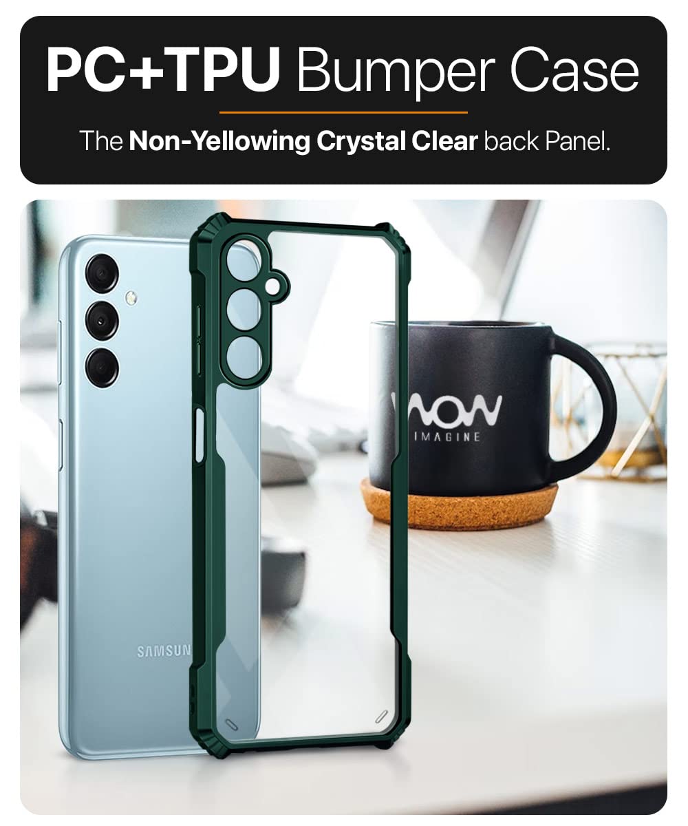 Shock Proof Clear Back Case Mobile Cover for Samsung Galaxy M14 5G (Hard | Hybrid PC + TPU | Full Armour Device & Camera Protection | Camo Green)
