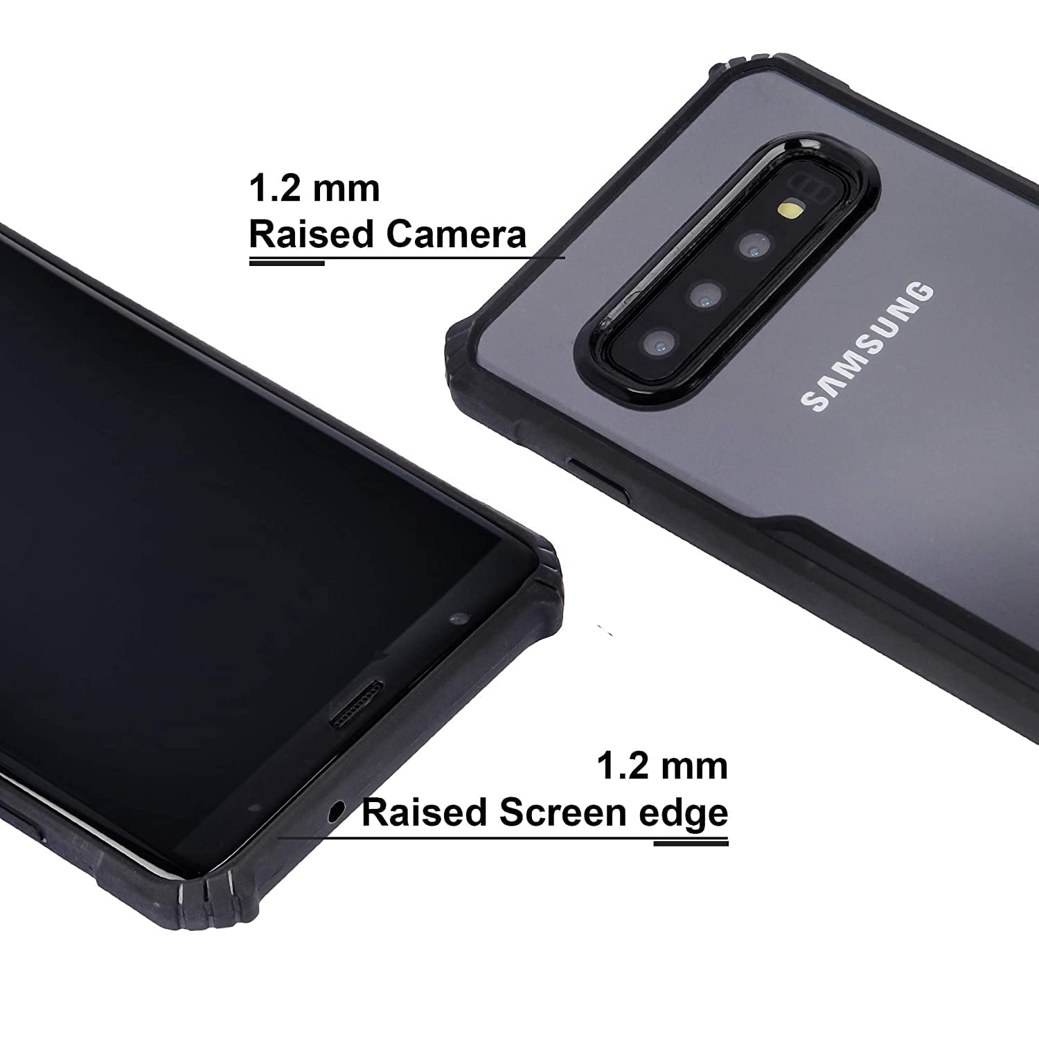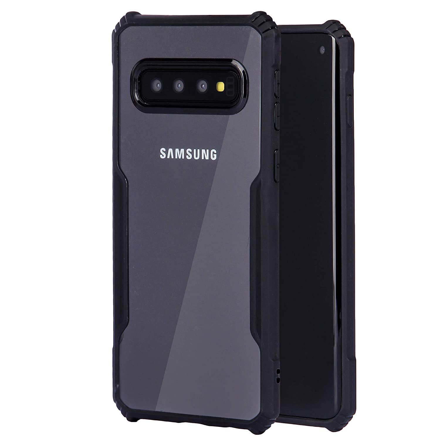 Shock Proof Clear Back Case Mobile Cover for Samsung Galaxy S10 Plus (Hard | Hybrid PC + TPU | Full Armour Device & Camera Protection | Black)