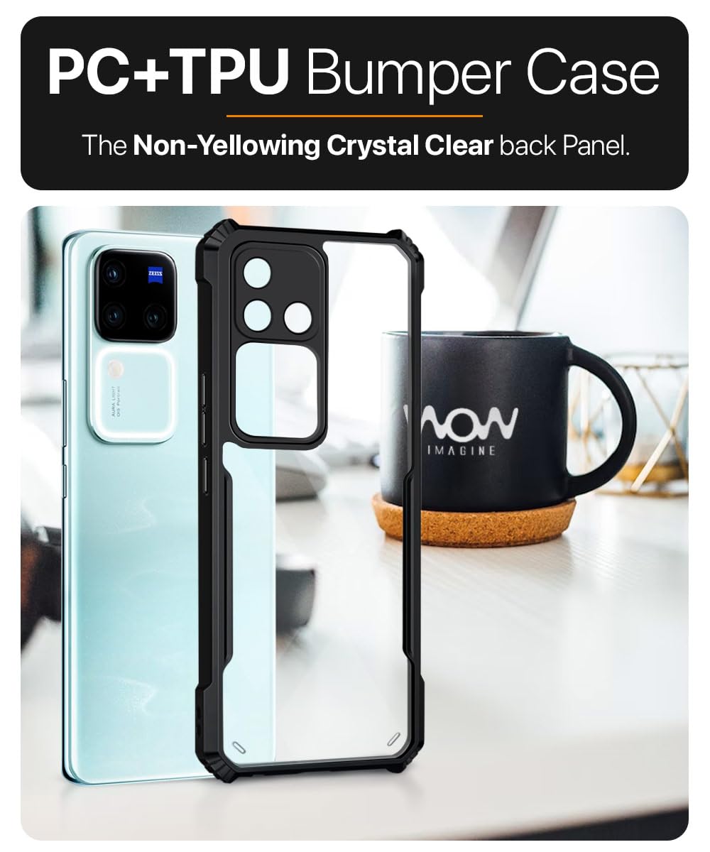 Shock Proof Clear Back Case Mobile Cover for Vivo V30 Pro (Hard | Hybrid PC + TPU | Full Armour Device & Camera Protection | Black) is designed with premium quality materials to provide superior protection, durability, and style for your smartphone. It offers a perfect balance between functionality and aesthetics, ensuring your device stays safe from scratches, impacts, and daily wear. Engineered with precision, it features accurate cutouts for ports, buttons, and cameras, making it highly convenient for everyday use. The slim and lightweight design ensures that your device retains its sleek profile without adding unnecessary bulk. Whether it is a nano film tempered glass, a hybrid back case, or a camera lens protector, each product is created with attention to detail to enhance the user experience and extend the life of your smartphone. The material used ensures longlasting clarity, antiscratch performance, and resistance against fingerprints and smudges. It is the ideal choice for users who want both style and substance in their smartphone accessories. This product from reflects innovation and craftsmanship, making it a reliable accessory that safeguards your investment while maintaining modern appeal.