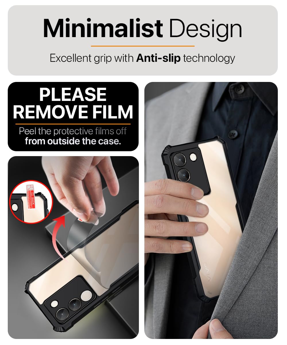 The Shock Proof Clear Back Case Mobile Cover for Vivo Y200 5G (Hard | Hybrid PC + TPU | Full Armour Device & Camera Protection | Black) is designed with premium quality materials to provide superior protection, durability, and style for your smartphone. It offers a perfect balance between functionality and aesthetics, ensuring your device stays safe from scratches, impacts, and daily wear. Engineered with precision, it features accurate cutouts for ports, buttons, and cameras, making it highly convenient for everyday use. The slim and lightweight design ensures that your device retains its sleek profile without adding unnecessary bulk. Whether it is a nano film tempered glass, a hybrid back case, or a camera lens protector, each product is created with attention to detail to enhance the user experience and extend the life of your smartphone. The material used ensures long-lasting clarity, anti-scratch performance, and resistance against fingerprints and smudges. It is the ideal choice for users who want both style and substance in their smartphone accessories. This product from reflects innovation and craftsmanship, making it a reliable accessory that safeguards your investment while maintaining modern appeal.