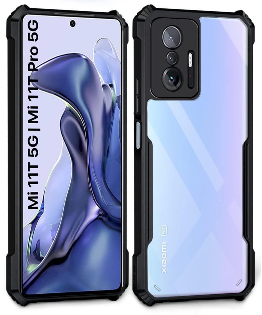 Shock Proof Clear Back Case Mobile Cover for Xiaomi Mi 11T 5G | Mi 11T Pro 5G (Hard | Hybrid PC + TPU | Full Armour Device & Camera Protection | Black)