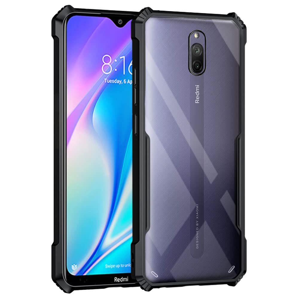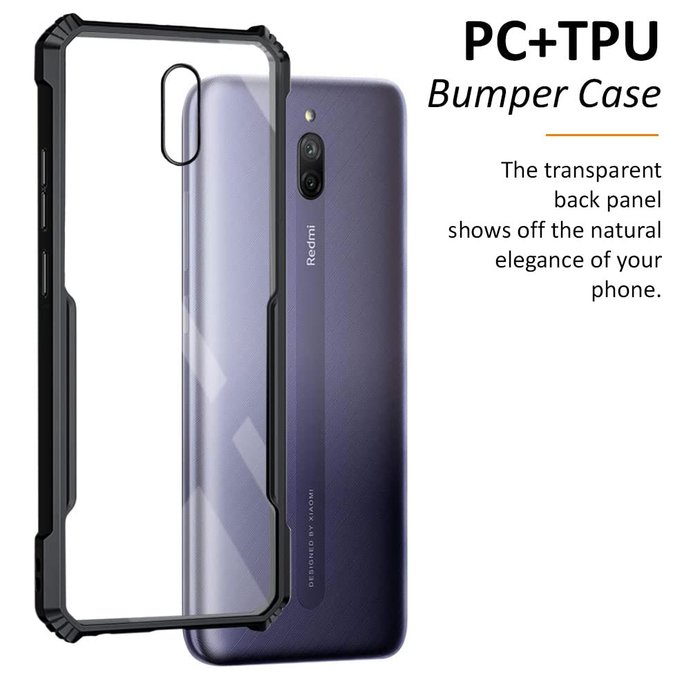 Shock Proof Clear Back Case Mobile Cover for Xiaomi Mi Redmi 8A Dual | (Hard | Hybrid PC + TPU | Full Armour Device & Camera Protection | Black)
