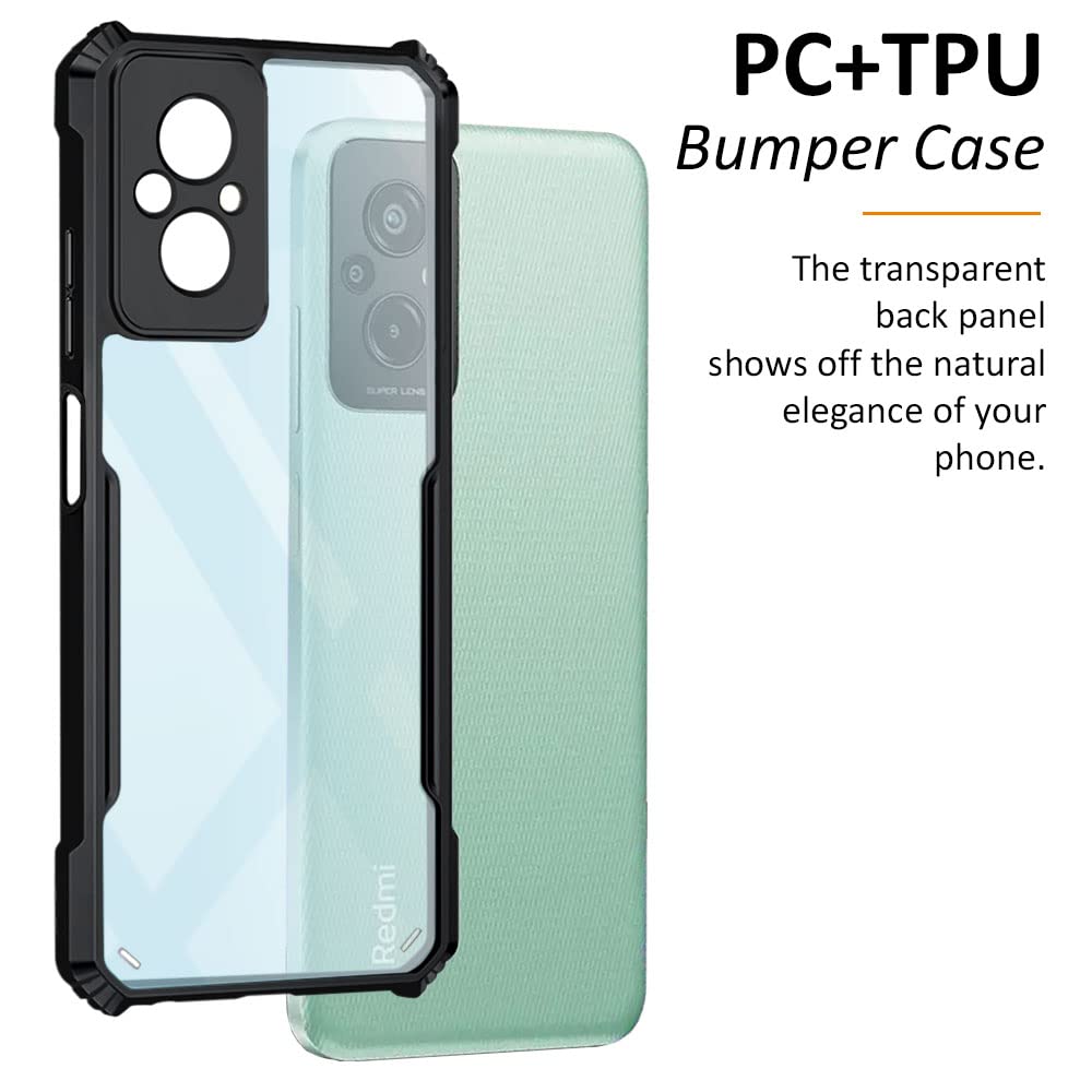 Shock Proof Clear Back Case Mobile Cover for Xiaomi Redmi 11 Prime 4G (Hard | Hybrid PC + TPU | Full Armour Device & Camera Protection | Black)