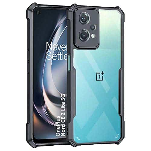 Shock Proof Clear Back Cover Case Mobile Cover for 1+ OnePlus Nord CE 2 Lite 5G (Hard | Hybrid PC + TPU | Full Armour Device & Camera Protection | Black)