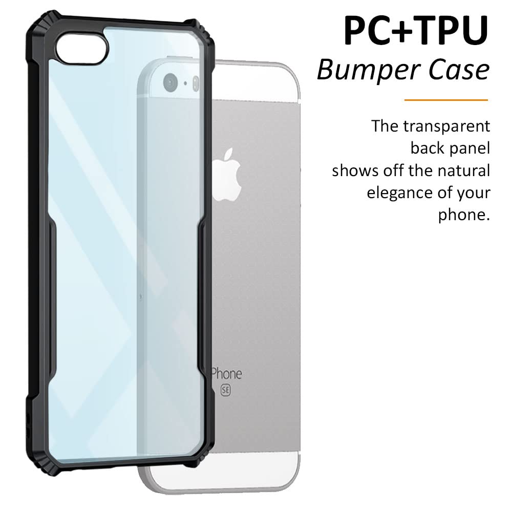 The Shock Proof Clear Back Cover Case Mobile Cover for Apple iPhone 5S | 5 | 5 SE (Hard | Hybrid PC + TPU | Full Armour Device & Camera Protection | Black) is designed with premium quality materials to provide superior protection, durability, and style for your smartphone. It offers a perfect balance between functionality and aesthetics, ensuring your device stays safe from scratches, impacts, and daily wear. Engineered with precision, it features accurate cutouts for ports, buttons, and cameras, making it highly convenient for everyday use. The slim and lightweight design ensures that your device retains its sleek profile without adding unnecessary bulk. Whether it is a nano film tempered glass, a hybrid back case, or a camera lens protector, each product is created with attention to detail to enhance the user experience and extend the life of your smartphone. The material used ensures long-lasting clarity, anti-scratch performance, and resistance against fingerprints and smudges. It is the ideal choice for users who want both style and substance in their smartphone accessories. This product from reflects innovation and craftsmanship, making it a reliable accessory that safeguards your investment while maintaining modern appeal.
