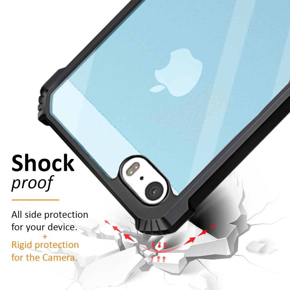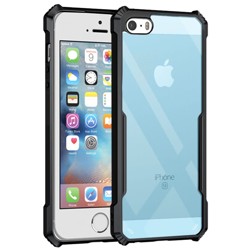 Shock Proof Clear Back Cover Case Mobile Cover for Apple iPhone 5S | 5 | 5 SE (Hard | Hybrid PC + TPU | Full Armour Device & Camera Protection | Black)