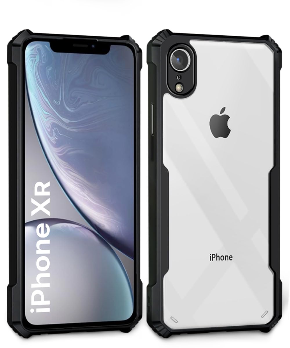 Shock Proof Clear Back Cover Case Mobile Cover for Apple iPhone XR (Hard | Hybrid PC + TPU | Full Armour Device & Camera Protection | Black)