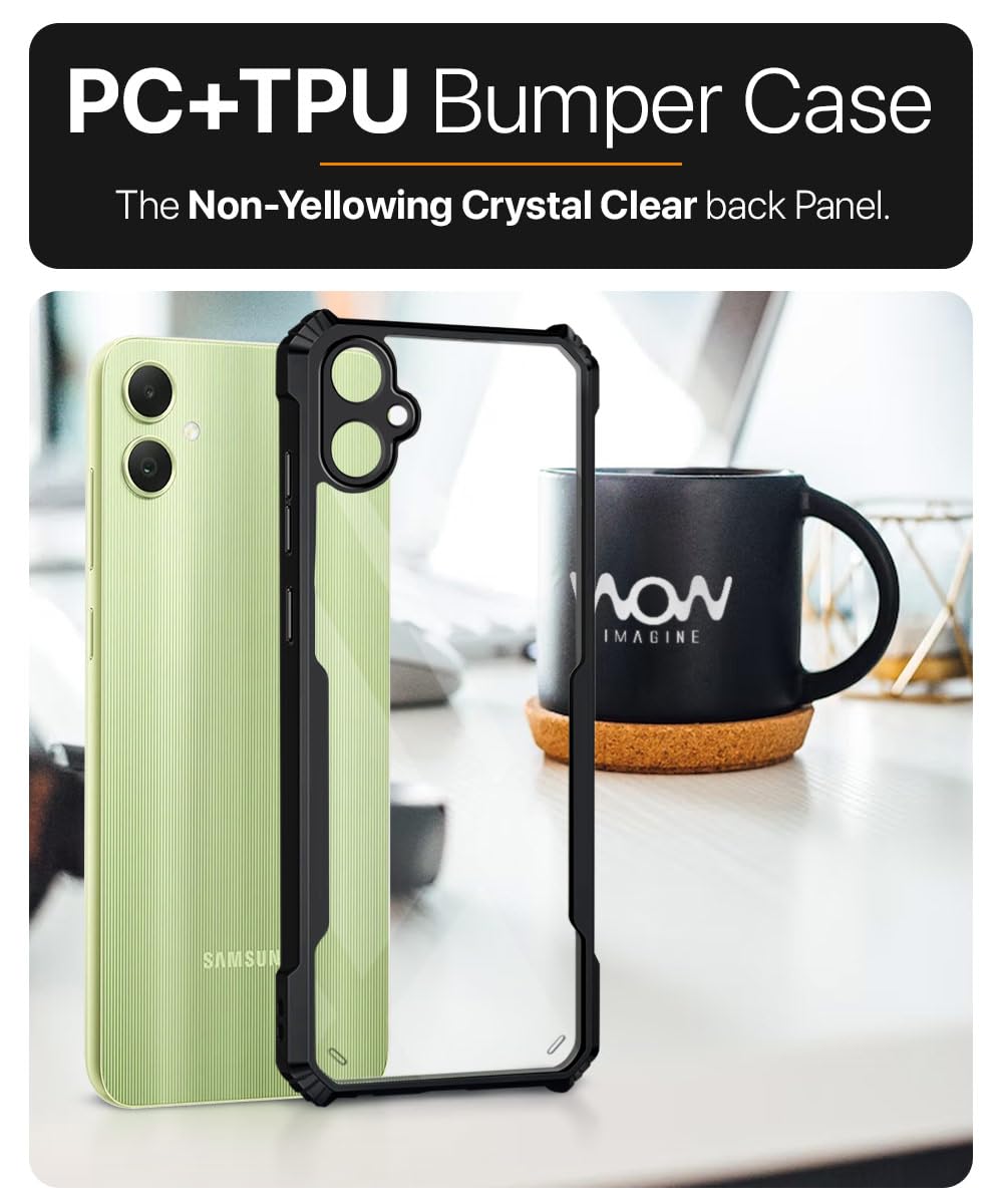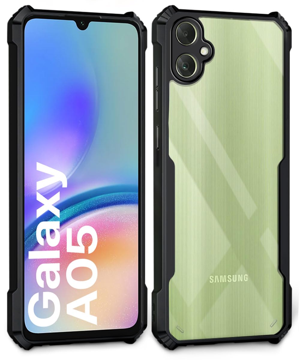 Shock Proof Clear Back Cover Case Mobile Cover for Samsung Galaxy A05 | Galaxy F05 | Galaxy M05 (Hard | Hybrid PC + TPU | Full Armour Device & Camera Protection | Black)