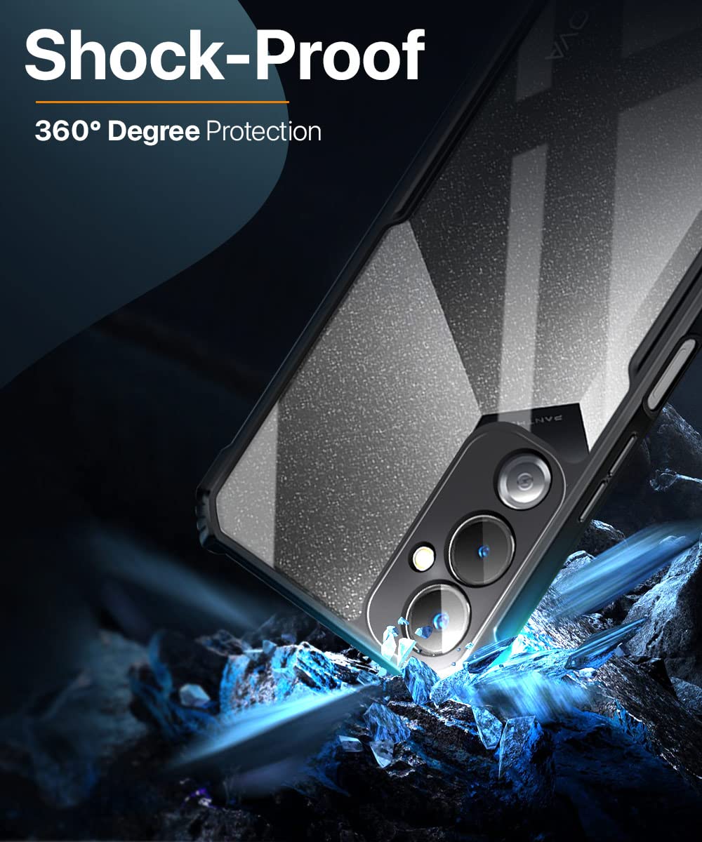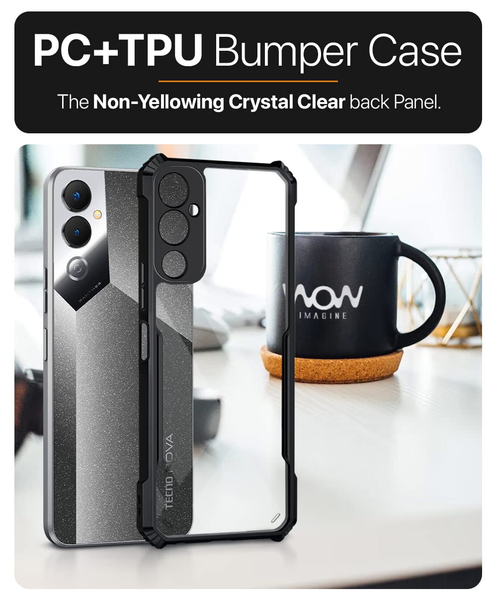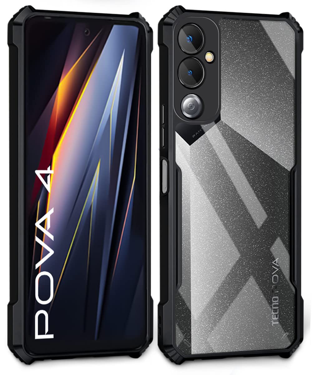 Shock Proof Clear Back Cover Case Mobile Cover for Tecno POVA 4 (Hard | Hybrid PC + TPU | Full Armour Device & Camera Protection | Black)