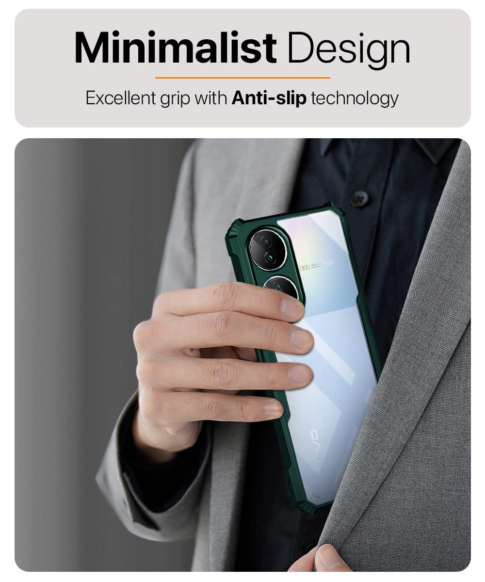 The Shock Proof Clear Back Cover Case Mobile Cover for Vivo Y100 5G (Hard | Hybrid PC + TPU | Full Armour Device & Camera Protection | Green) is designed with premium quality materials to provide superior protection, durability, and style for your smartphone. It offers a perfect balance between functionality and aesthetics, ensuring your device stays safe from scratches, impacts, and daily wear. Engineered with precision, it features accurate cutouts for ports, buttons, and cameras, making it highly convenient for everyday use. The slim and lightweight design ensures that your device retains its sleek profile without adding unnecessary bulk. Whether it is a nano film tempered glass, a hybrid back case, or a camera lens protector, each product is created with attention to detail to enhance the user experience and extend the life of your smartphone. The material used ensures long-lasting clarity, anti-scratch performance, and resistance against fingerprints and smudges. It is the ideal choice for users who want both style and substance in their smartphone accessories. This product from reflects innovation and craftsmanship, making it a reliable accessory that safeguards your investment while maintaining modern appeal.