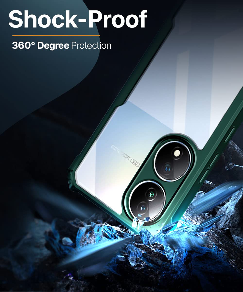 Shock Proof Clear Back Cover Case Mobile Cover for Vivo Y100 5G (Hard | Hybrid PC + TPU | Full Armour Device & Camera Protection | Green)