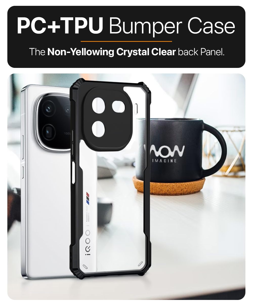 Shock Proof Clear Mobile Back Cover Case for iQOO 12 5G | AirEDGE Technology | Hard | Hybrid PC + TPU | Full Armour Device & Camera Protection – Black