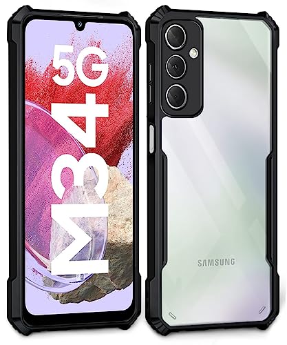 Shock Proof Clear Mobile Back Cover Case for Samsung Galaxy M34 5G | F34 5G | AirEDGE Technology | Hard | Hybrid PC + TPU | Full Armour Device & Camera Protection – Black