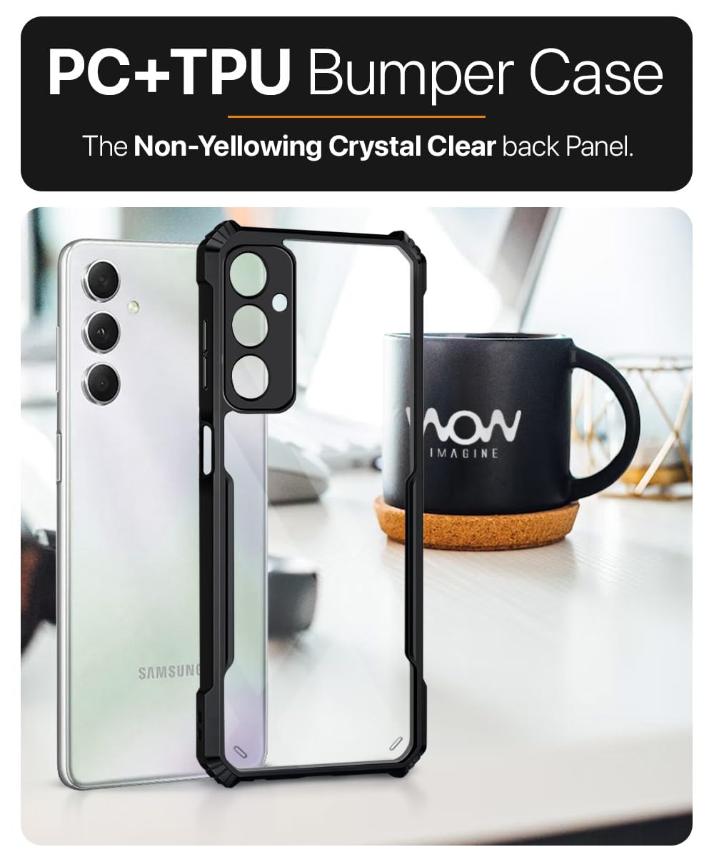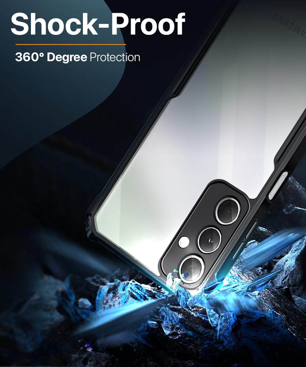 The Shock Proof Clear Mobile Back Cover Case for Samsung Galaxy M34 5G | F34 5G | AirEDGE Technology | Hard | Hybrid PC + TPU | Full Armour Device & Camera Protection – Black is designed with premium quality materials to provide superior protection, durability, and style for your smartphone. It offers a perfect balance between functionality and aesthetics, ensuring your device stays safe from scratches, impacts, and daily wear. Engineered with precision, it features accurate cutouts for ports, buttons, and cameras, making it highly convenient for everyday use. The slim and lightweight design ensures that your device retains its sleek profile without adding unnecessary bulk. Whether it is a nano film tempered glass, a hybrid back case, or a camera lens protector, each product is created with attention to detail to enhance the user experience and extend the life of your smartphone. The material used ensures long-lasting clarity, anti-scratch performance, and resistance against fingerprints and smudges. It is the ideal choice for users who want both style and substance in their smartphone accessories. This product from reflects innovation and craftsmanship, making it a reliable accessory that safeguards your investment while maintaining modern appeal.