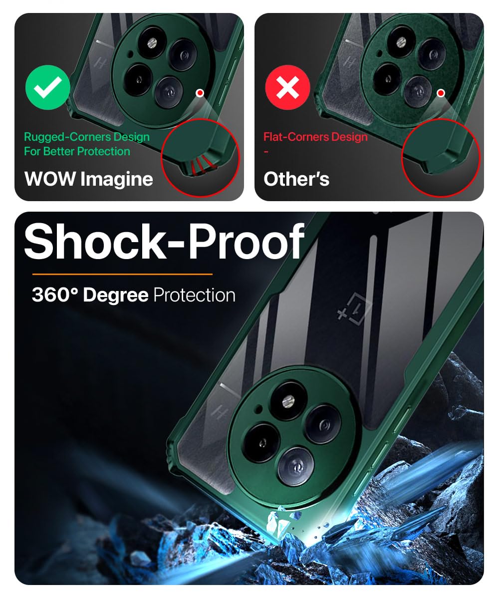Shock Proof Clear Protective Back Case for 1+ OnePlus 13 – AirEDGE Technology | 360 Degree Camera Protection | Transparent Hybrid Back Case Mobile Cover – Green