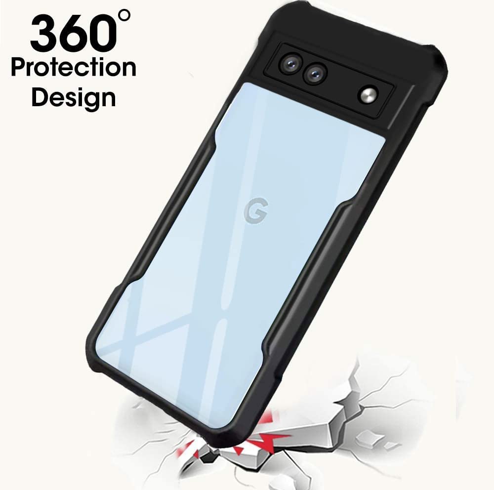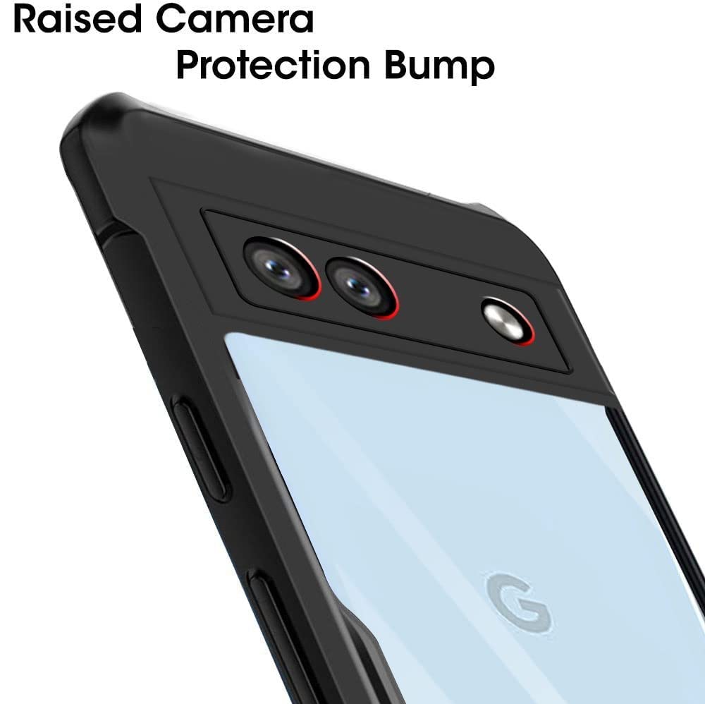 Shock Proof Clear Protective Back Case for Google Pixel 7A – AirEDGE Technology | 360 Degree Camera Protection | Transparent Hybrid Back Case Mobile Cover – Black