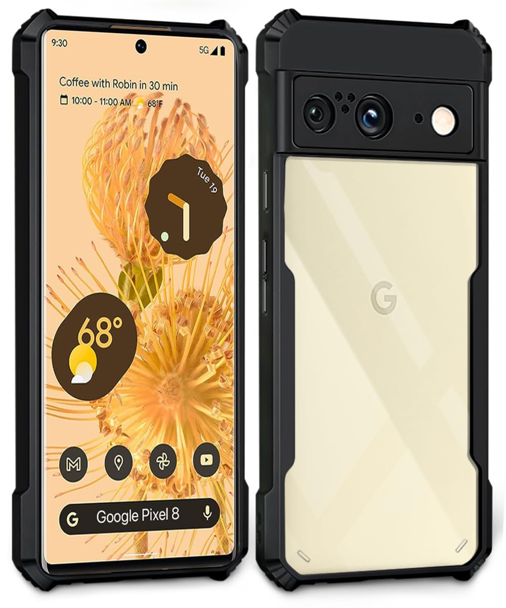 The Shock Proof Clear Protective Back Case for Google Pixel 8 – AirEDGE Technology | 360 Degree Camera Protection | Transparent Hybrid Back Case Mobile Cover – Black is designed with premium quality materials to provide superior protection, durability, and style for your smartphone. It offers a perfect balance between functionality and aesthetics, ensuring your device stays safe from scratches, impacts, and daily wear. Engineered with precision, it features accurate cutouts for ports, buttons, and cameras, making it highly convenient for everyday use. The slim and lightweight design ensures that your device retains its sleek profile without adding unnecessary bulk. Whether it is a nano film tempered glass, a hybrid back case, or a camera lens protector, each product is created with attention to detail to enhance the user experience and extend the life of your smartphone. The material used ensures long-lasting clarity, anti-scratch performance, and resistance against fingerprints and smudges. It is the ideal choice for users who want both style and substance in their smartphone accessories. This product from reflects innovation and craftsmanship, making it a reliable accessory that safeguards your investment while maintaining modern appeal.
