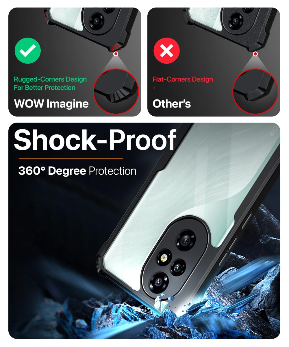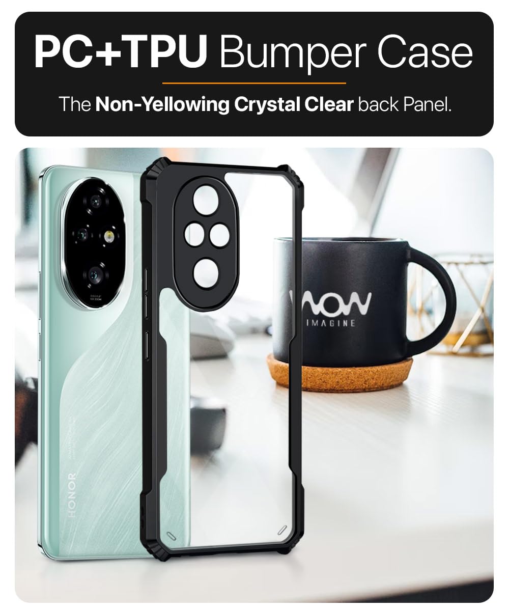 The Shock Proof Clear Protective Back Case for Honor 200 Pro 5G – AirEDGE Technology | 360 Degree Camera Protection | Transparent Hybrid Back Case Mobile Cover – Black is designed with premium quality materials to provide superior protection, durability, and style for your smartphone. It offers a perfect balance between functionality and aesthetics, ensuring your device stays safe from scratches, impacts, and daily wear. Engineered with precision, it features accurate cutouts for ports, buttons, and cameras, making it highly convenient for everyday use. The slim and lightweight design ensures that your device retains its sleek profile without adding unnecessary bulk. Whether it is a nano film tempered glass, a hybrid back case, or a camera lens protector, each product is created with attention to detail to enhance the user experience and extend the life of your smartphone. The material used ensures long-lasting clarity, anti-scratch performance, and resistance against fingerprints and smudges. It is the ideal choice for users who want both style and substance in their smartphone accessories. This product from reflects innovation and craftsmanship, making it a reliable accessory that safeguards your investment while maintaining modern appeal.