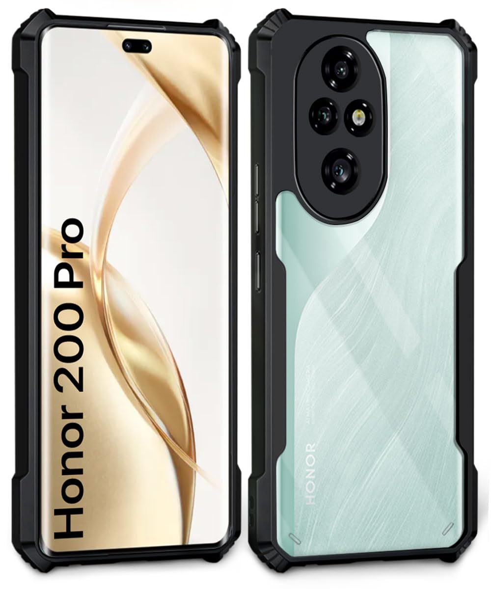 Shock Proof Clear Protective Back Case for Honor 200 Pro 5G – AirEDGE Technology | 360 Degree Camera Protection | Transparent Hybrid Back Case Mobile Cover – Black