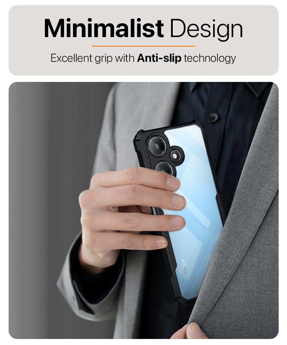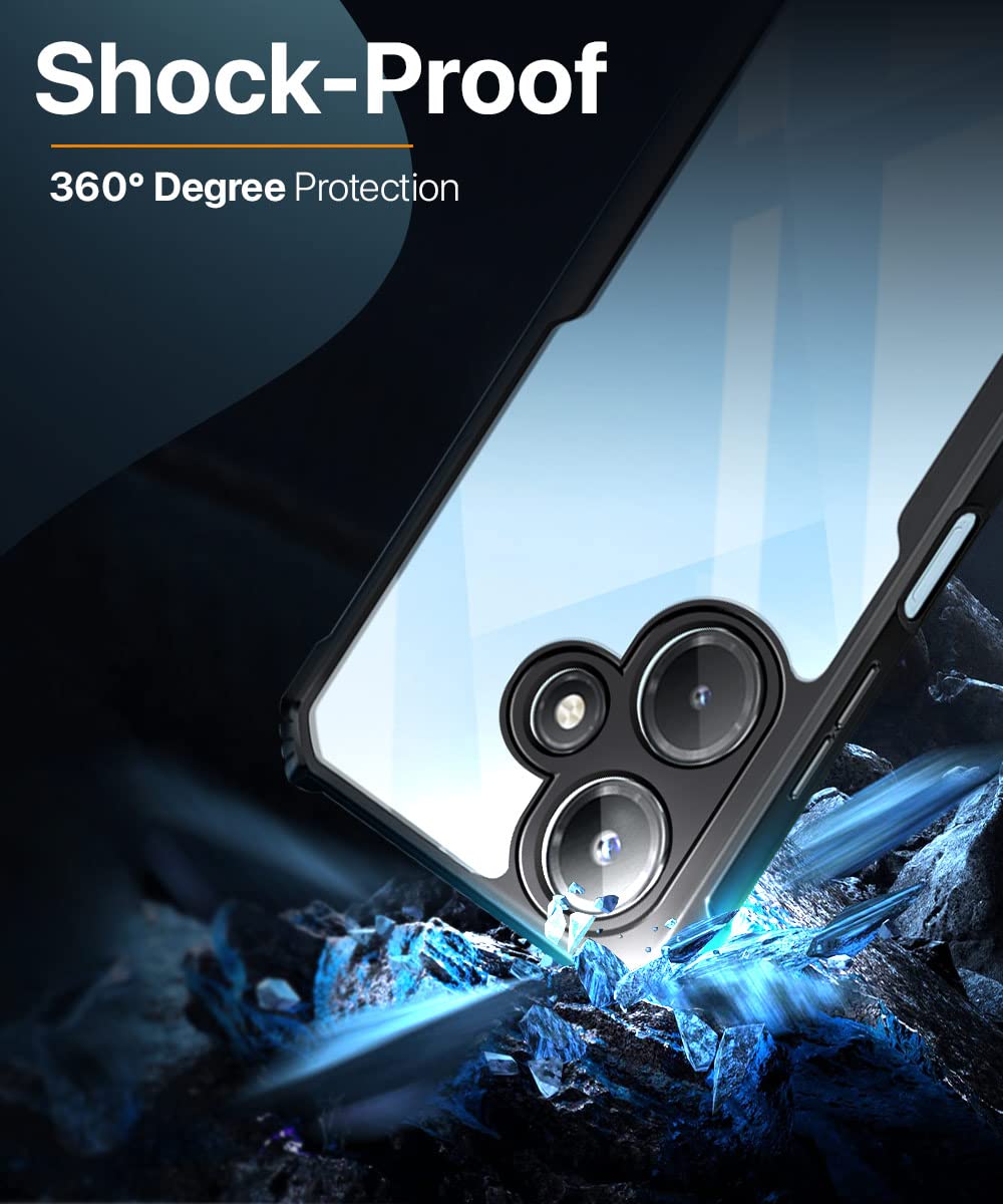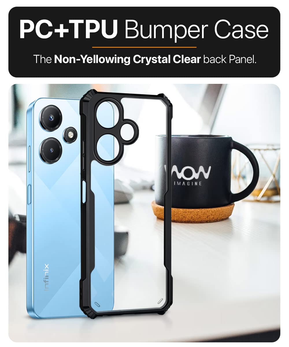 The Shock Proof Clear Protective Back Case for Infinix Hot 30i – AirEDGE Technology | 360 Degree Camera Protection | Transparent Hybrid Back Case Mobile Cover – Black is designed with premium quality materials to provide superior protection, durability, and style for your smartphone. It offers a perfect balance between functionality and aesthetics, ensuring your device stays safe from scratches, impacts, and daily wear. Engineered with precision, it features accurate cutouts for ports, buttons, and cameras, making it highly convenient for everyday use. The slim and lightweight design ensures that your device retains its sleek profile without adding unnecessary bulk. Whether it is a nano film tempered glass, a hybrid back case, or a camera lens protector, each product is created with attention to detail to enhance the user experience and extend the life of your smartphone. The material used ensures long-lasting clarity, anti-scratch performance, and resistance against fingerprints and smudges. It is the ideal choice for users who want both style and substance in their smartphone accessories. This product from reflects innovation and craftsmanship, making it a reliable accessory that safeguards your investment while maintaining modern appeal.