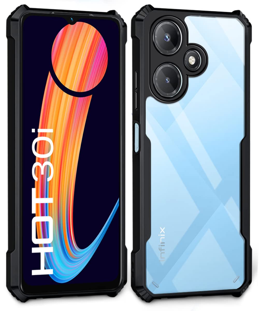 Shock Proof Clear Protective Back Case for Infinix Hot 30i – AirEDGE Technology | 360 Degree Camera Protection | Transparent Hybrid Back Case Mobile Cover – Black