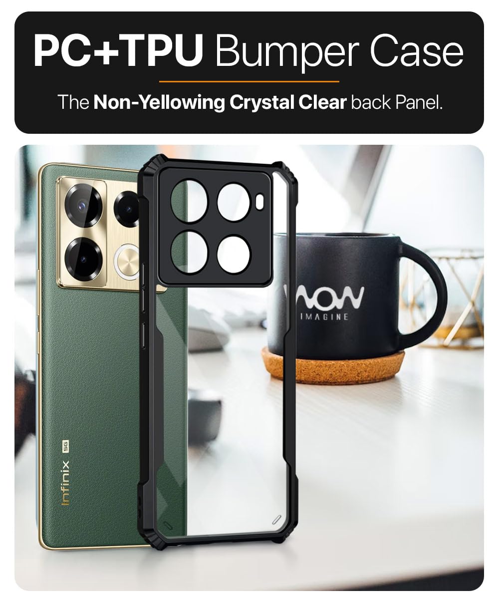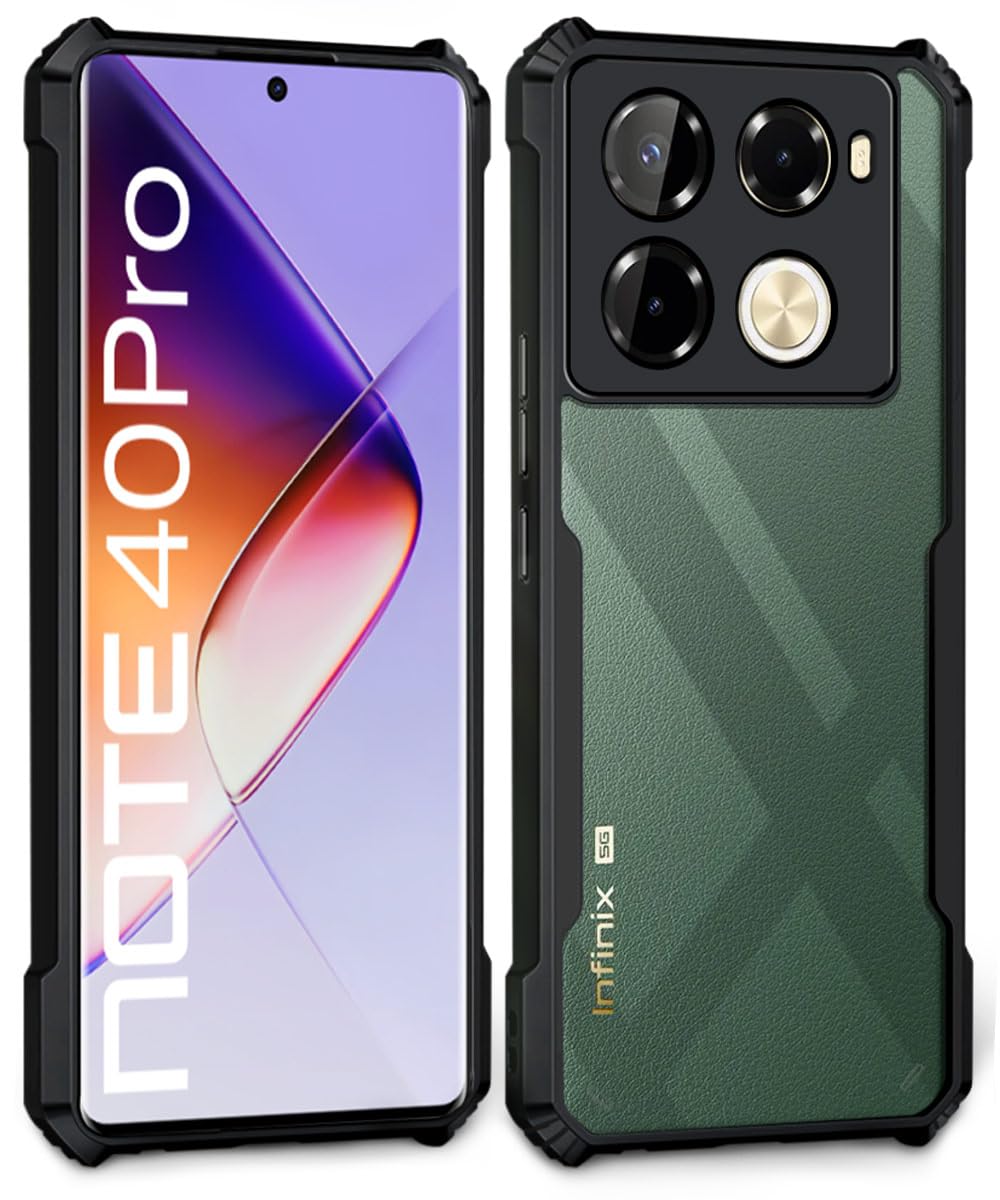Shock Proof Clear Protective Back Case for Infinix Note 40 Pro 5G | Note 40 Pro Plus – AirEDGE Technology | 360 Degree Camera Protection | Transparent Hybrid Back Case Mobile Cover – Black