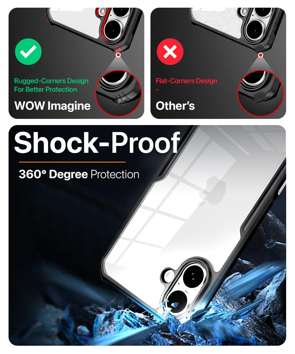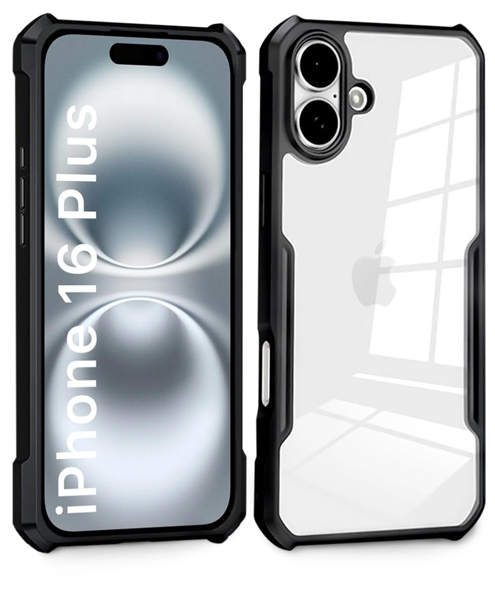 Shock Proof Clear Protective Back Case for iPhone 16 Plus – AirEDGE Technology | 360 Degree Camera Protection | Transparent Hybrid Back Case Mobile Cover – Black