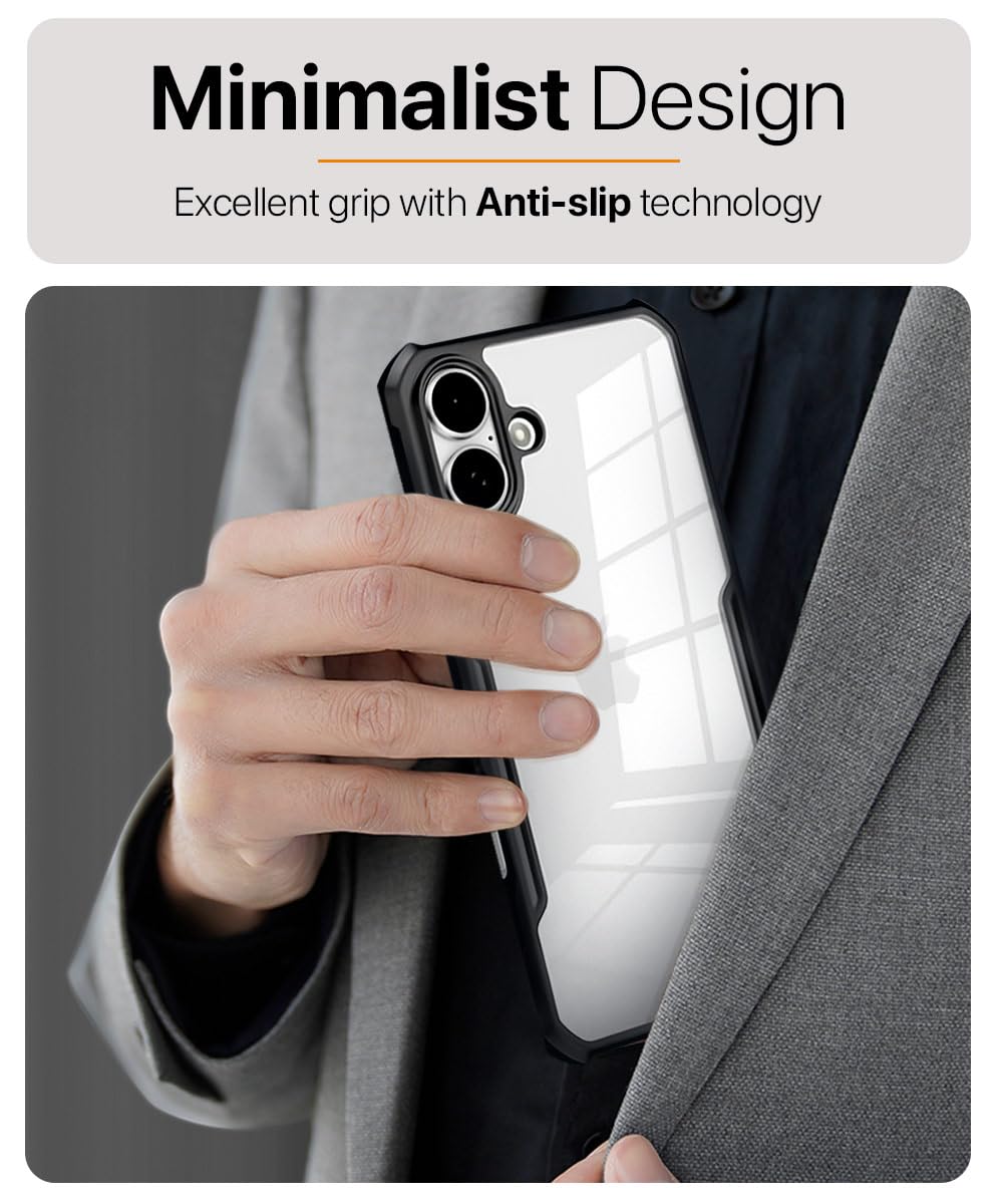 The Shock Proof Clear Protective Back Case for iPhone 16 Plus – AirEDGE Technology | 360 Degree Camera Protection | Transparent Hybrid Back Case Mobile Cover – Black is designed with premium quality materials to provide superior protection, durability, and style for your smartphone. It offers a perfect balance between functionality and aesthetics, ensuring your device stays safe from scratches, impacts, and daily wear. Engineered with precision, it features accurate cutouts for ports, buttons, and cameras, making it highly convenient for everyday use. The slim and lightweight design ensures that your device retains its sleek profile without adding unnecessary bulk. Whether it is a nano film tempered glass, a hybrid back case, or a camera lens protector, each product is created with attention to detail to enhance the user experience and extend the life of your smartphone. The material used ensures long-lasting clarity, anti-scratch performance, and resistance against fingerprints and smudges. It is the ideal choice for users who want both style and substance in their smartphone accessories. This product from reflects innovation and craftsmanship, making it a reliable accessory that safeguards your investment while maintaining modern appeal.