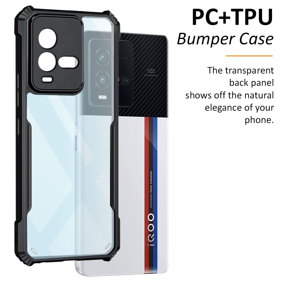 Shock Proof Clear Protective Back Case for iQOO 9T 5G – AirEDGE Technology | 360 Degree Camera Protection | Transparent Hybrid Back Case Mobile Cover – Black