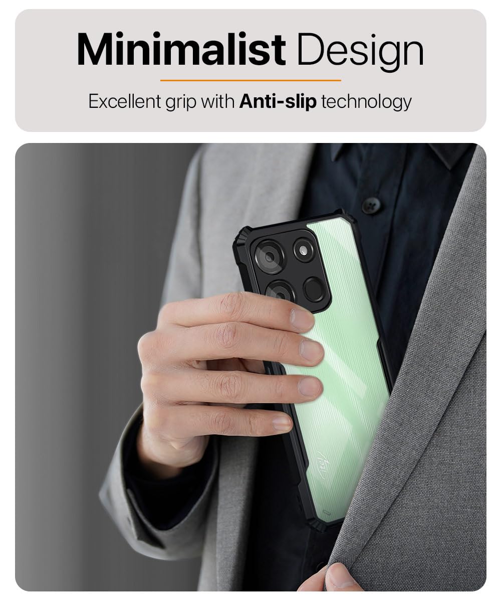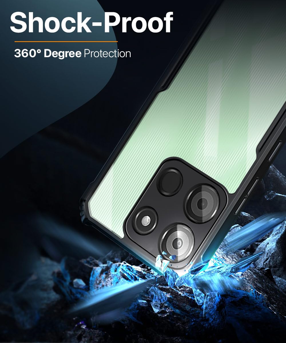 The Shock Proof Clear Protective Back Case for Itel A60 – AirEDGE Technology | 360 Degree Camera Protection | Transparent Hybrid Back Case Mobile Cover – Black is designed with premium quality materials to provide superior protection, durability, and style for your smartphone. It offers a perfect balance between functionality and aesthetics, ensuring your device stays safe from scratches, impacts, and daily wear. Engineered with precision, it features accurate cutouts for ports, buttons, and cameras, making it highly convenient for everyday use. The slim and lightweight design ensures that your device retains its sleek profile without adding unnecessary bulk. Whether it is a nano film tempered glass, a hybrid back case, or a camera lens protector, each product is created with attention to detail to enhance the user experience and extend the life of your smartphone. The material used ensures long-lasting clarity, anti-scratch performance, and resistance against fingerprints and smudges. It is the ideal choice for users who want both style and substance in their smartphone accessories. This product from reflects innovation and craftsmanship, making it a reliable accessory that safeguards your investment while maintaining modern appeal.
