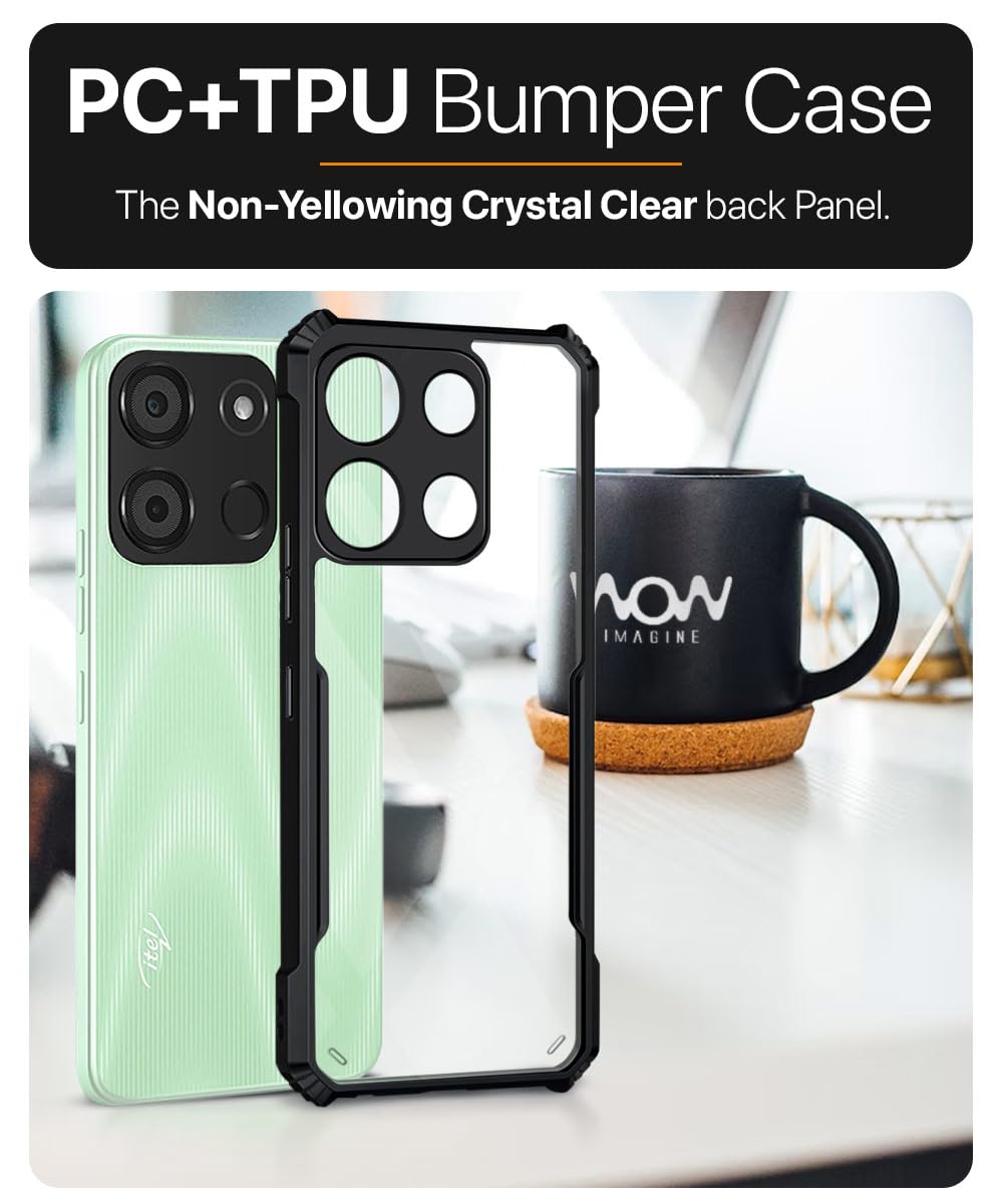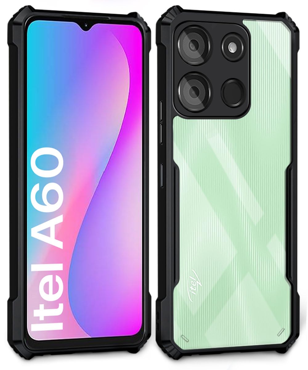 Shock Proof Clear Protective Back Case for Itel A60 – AirEDGE Technology | 360 Degree Camera Protection | Transparent Hybrid Back Case Mobile Cover – Black