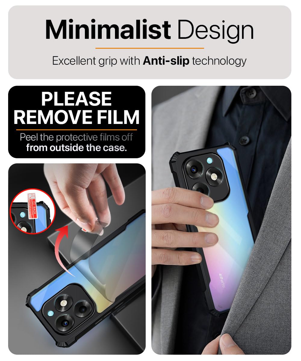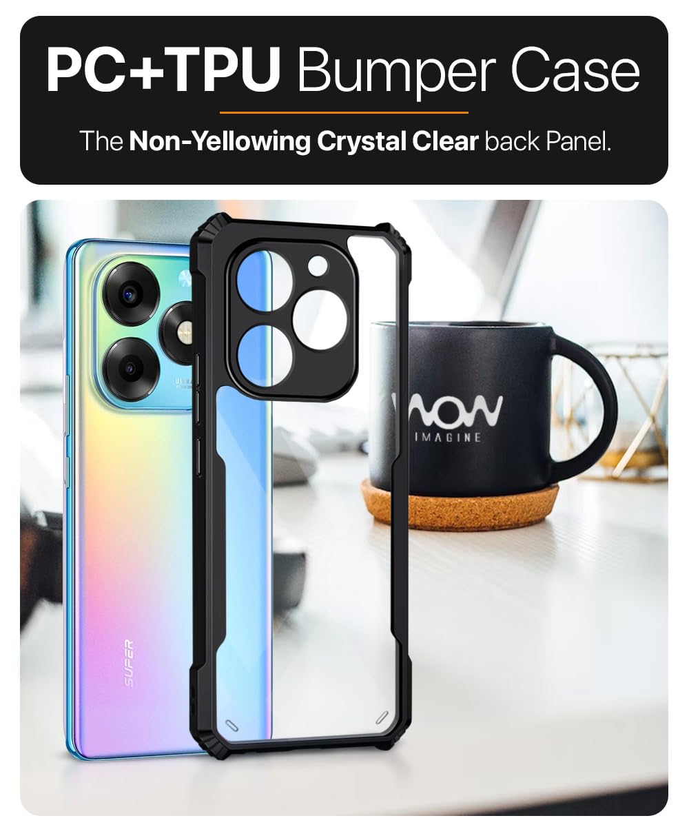 The Shock Proof Clear Protective Back Case for Itel S23 Plus – AirEDGE Technology | 360 Degree Camera Protection | Transparent Hybrid Back Case Mobile Cover – Black is designed with premium quality materials to provide superior protection, durability, and style for your smartphone. It offers a perfect balance between functionality and aesthetics, ensuring your device stays safe from scratches, impacts, and daily wear. Engineered with precision, it features accurate cutouts for ports, buttons, and cameras, making it highly convenient for everyday use. The slim and lightweight design ensures that your device retains its sleek profile without adding unnecessary bulk. Whether it is a nano film tempered glass, a hybrid back case, or a camera lens protector, each product is created with attention to detail to enhance the user experience and extend the life of your smartphone. The material used ensures long-lasting clarity, anti-scratch performance, and resistance against fingerprints and smudges. It is the ideal choice for users who want both style and substance in their smartphone accessories. This product from reflects innovation and craftsmanship, making it a reliable accessory that safeguards your investment while maintaining modern appeal.