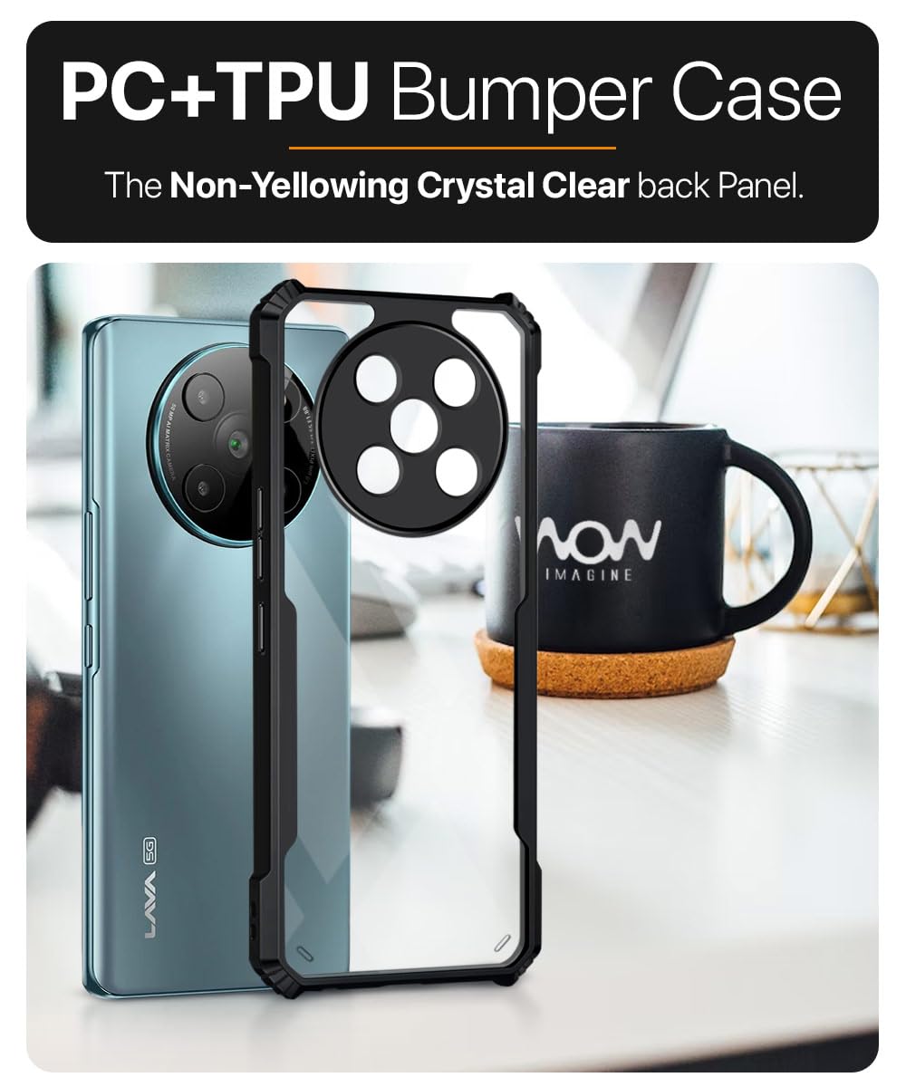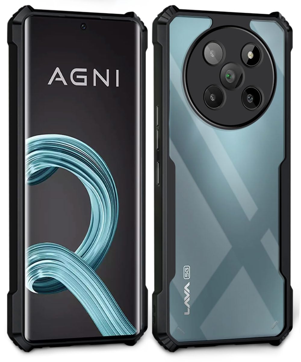 Shock Proof Clear Protective Back Case for Lava Agni 2 5G – AirEDGE Technology | 360 Degree Camera Protection | Transparent Hybrid Back Case Mobile Cover – Black