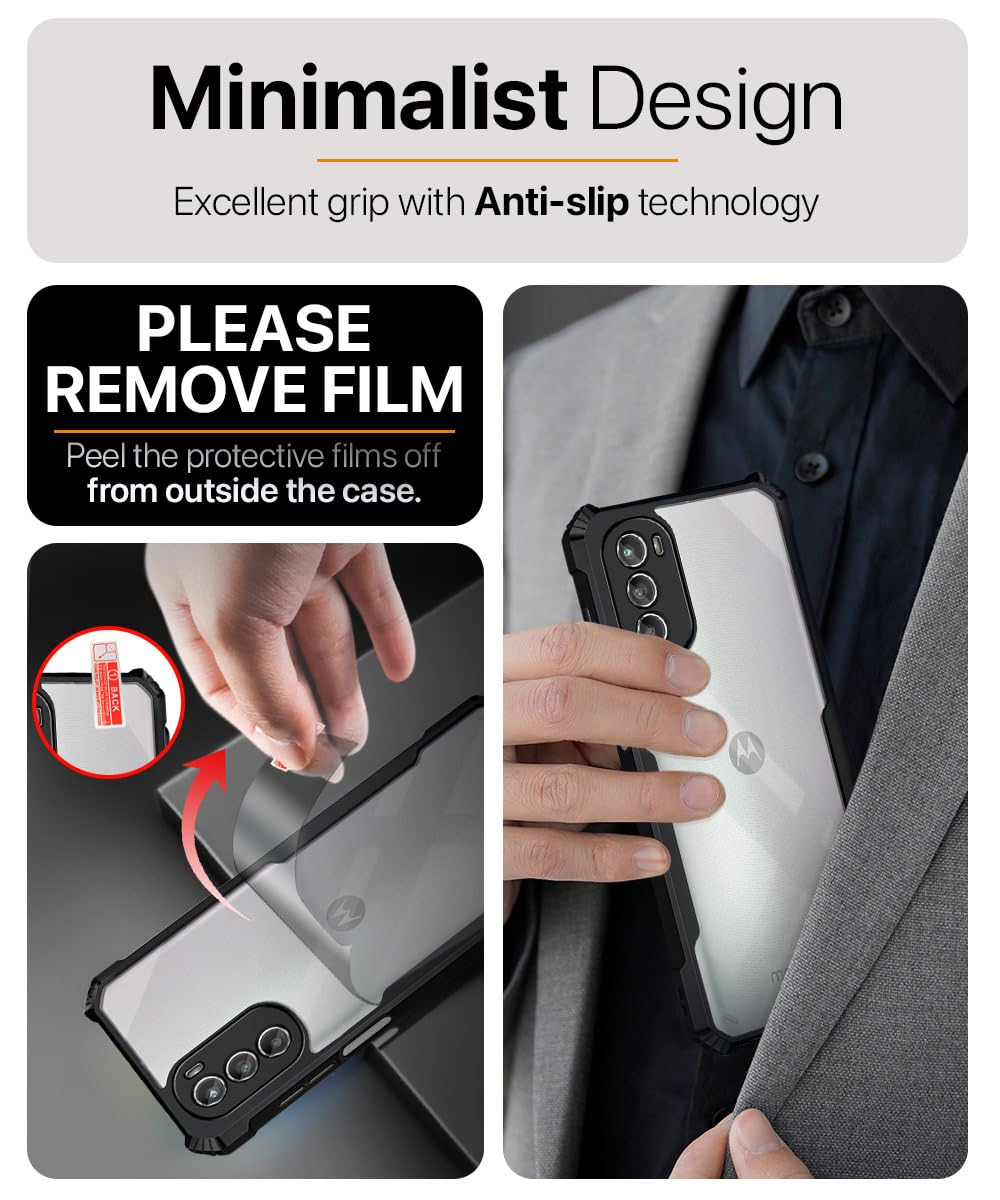 The Shock Proof Clear Protective Back Case for Motorola Moto G52 | G82 5G – AirEDGE Technology | 360 Degree Camera Protection | Transparent Hybrid Back Case Mobile Cover – Black is designed with premium quality materials to provide superior protection, durability, and style for your smartphone. It offers a perfect balance between functionality and aesthetics, ensuring your device stays safe from scratches, impacts, and daily wear. Engineered with precision, it features accurate cutouts for ports, buttons, and cameras, making it highly convenient for everyday use. The slim and lightweight design ensures that your device retains its sleek profile without adding unnecessary bulk. Whether it is a nano film tempered glass, a hybrid back case, or a camera lens protector, each product is created with attention to detail to enhance the user experience and extend the life of your smartphone. The material used ensures long-lasting clarity, anti-scratch performance, and resistance against fingerprints and smudges. It is the ideal choice for users who want both style and substance in their smartphone accessories. This product from reflects innovation and craftsmanship, making it a reliable accessory that safeguards your investment while maintaining modern appeal.