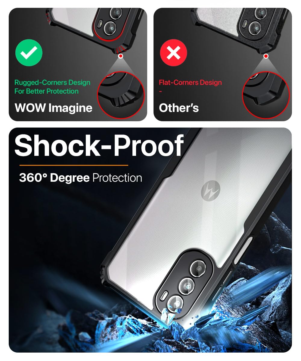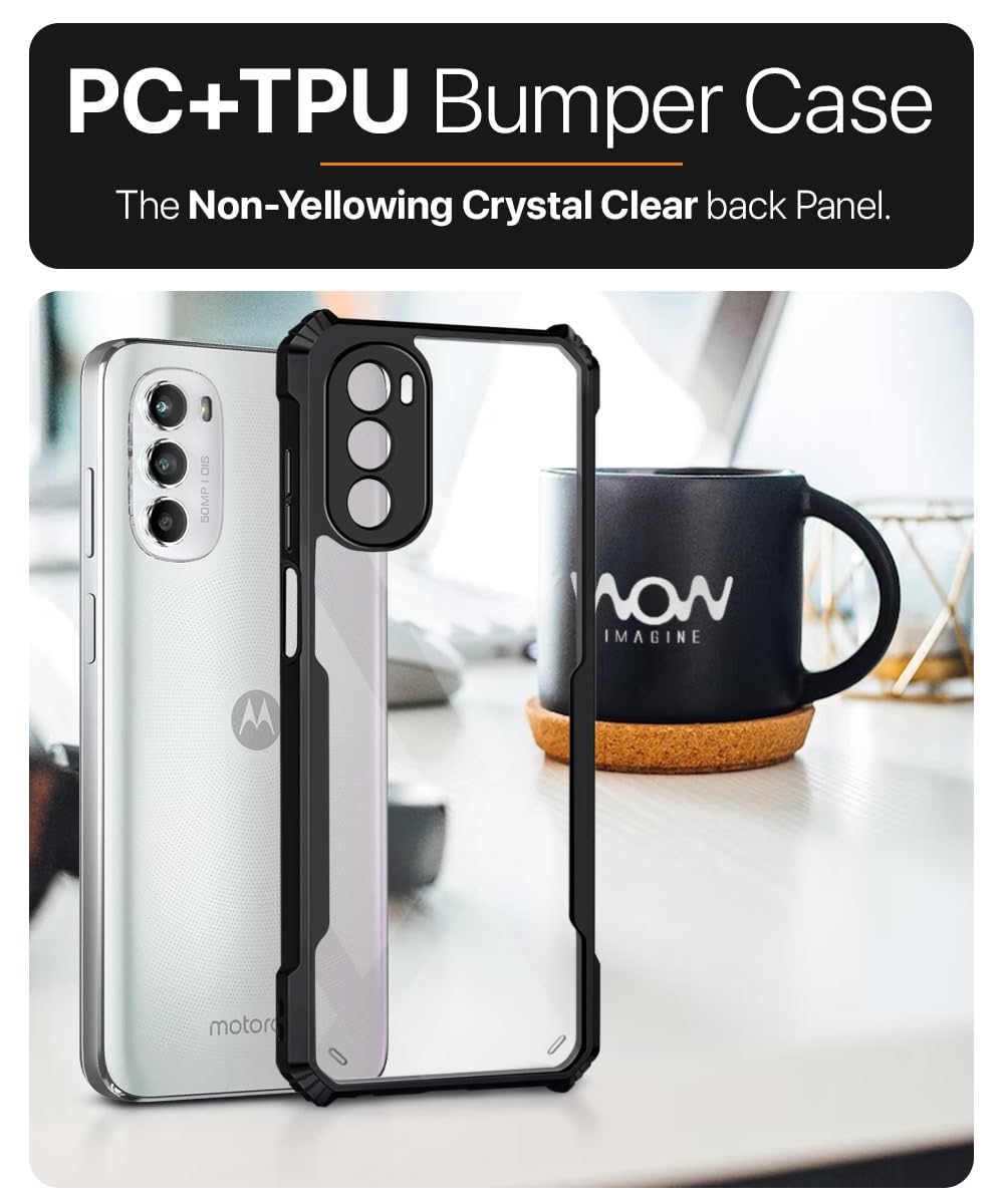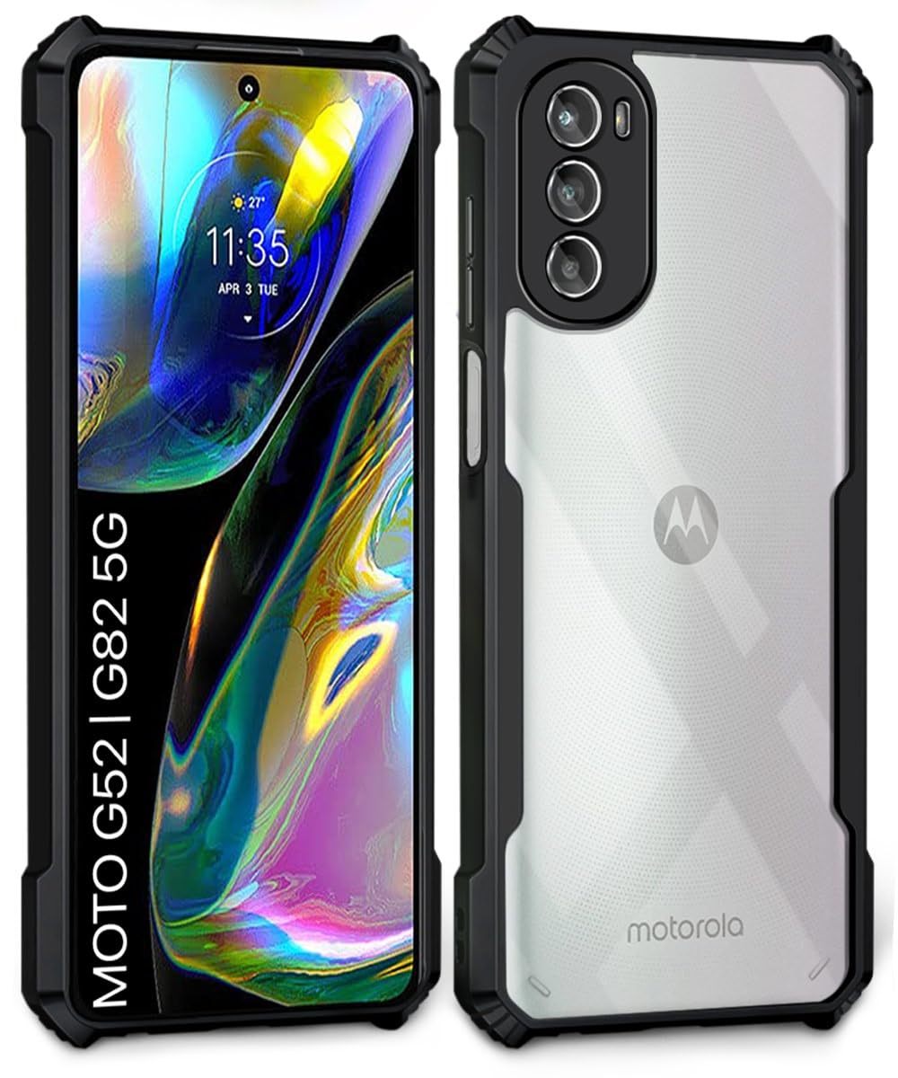 Shock Proof Clear Protective Back Case for Motorola Moto G52 | G82 5G – AirEDGE Technology | 360 Degree Camera Protection | Transparent Hybrid Back Case Mobile Cover – Black